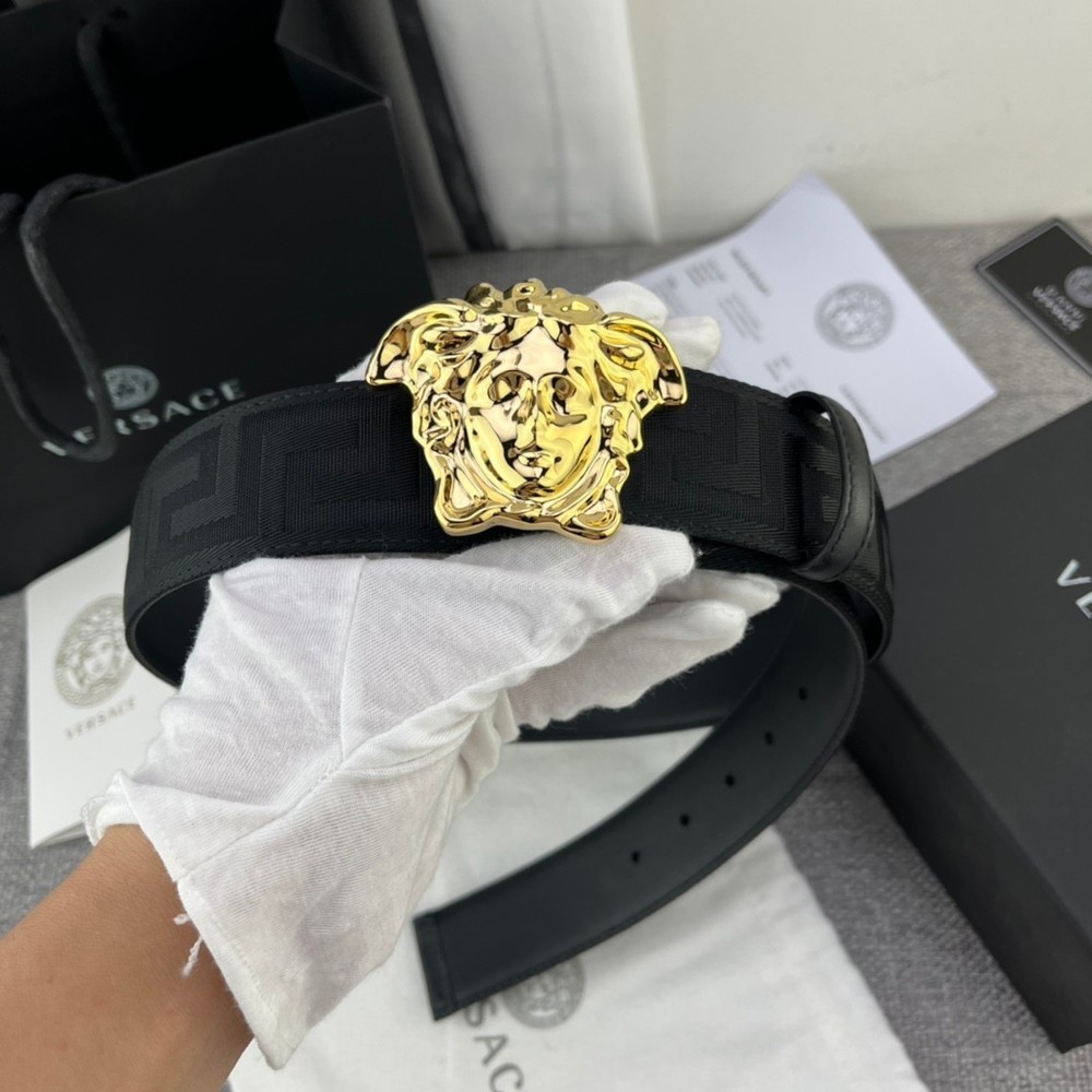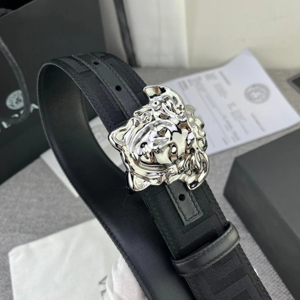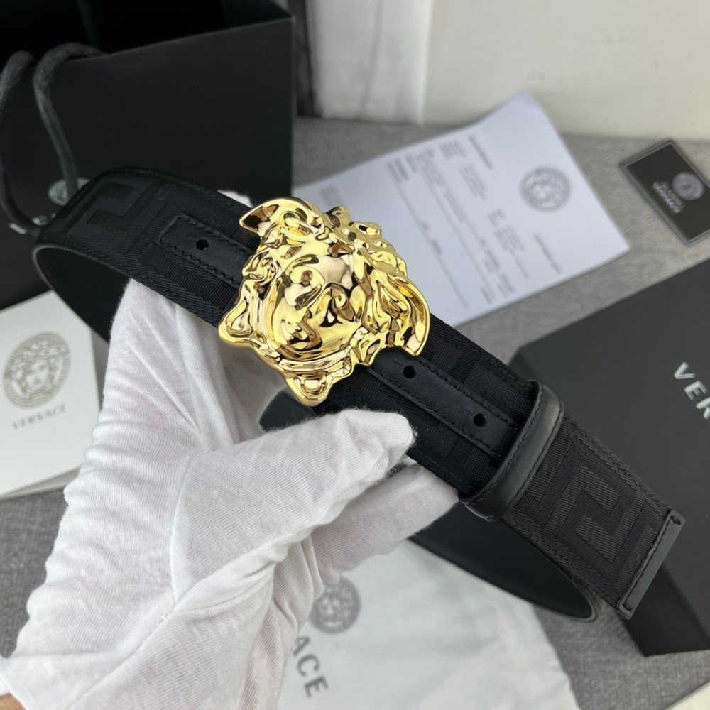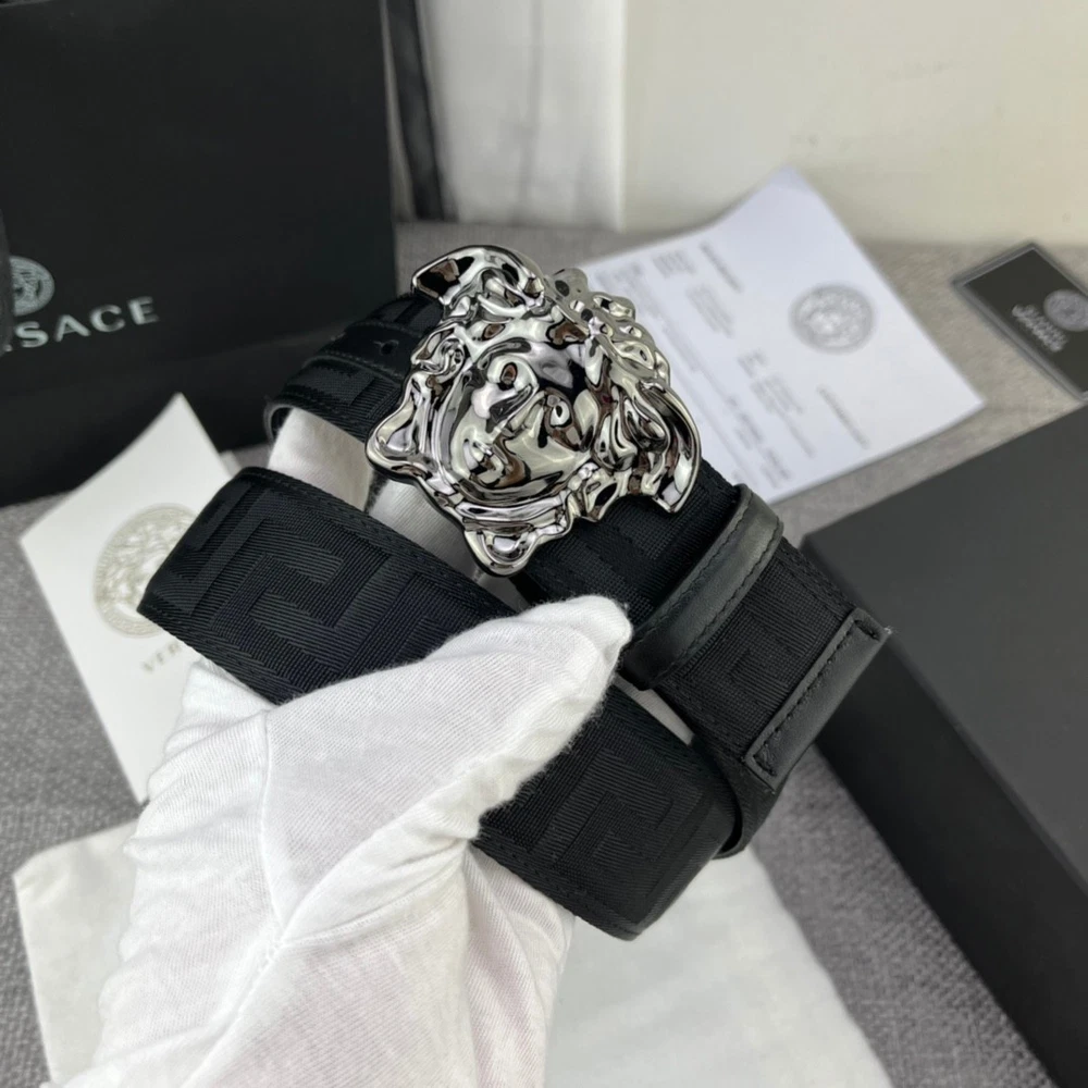 Versace belt for sale authentic Width:4.0cm/1.5in One side of the belt is made of woven fabric, and the other side is made of genuine leather. Size: 80/32-waist : 30-32 applicable 85/34-waist : 32-34 applicable 90/36-waist : 34-36 applicable 95/38-waist : 36-38 applicable 100/40-waist : 38-40 applicable 105/42-waist : 40-42 applicable 110/44-waist : 42-44 applicable