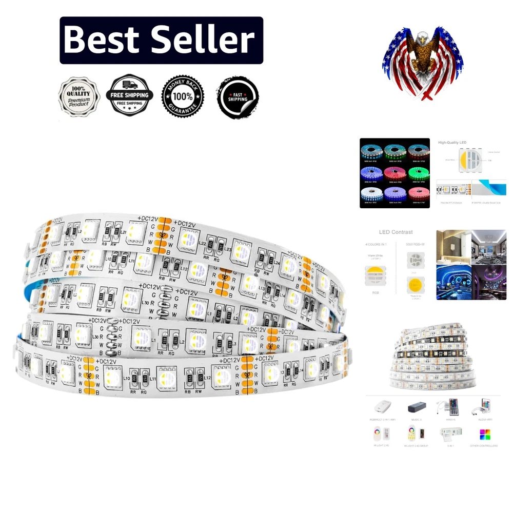 Versatile 16ft RGBW LED Tape Light - Dimmable & App-Controlled Home Decor