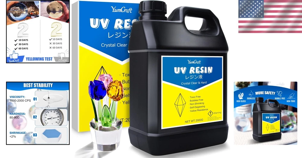 Versatile 2,000g Crystal Clear UV Curing Resin - Quick Dry for Various Materials ‹ › ‹ › ‹ › ‹ › ‹ › ‹ › ‹ › ‹ › ‹ › Versatile 2,000g Crystal Clear UV Curing Resin Quick Dry for Various Materials Convenient and Efficient Upgraded UV resin made with premium materials for fast, complete curing. Minimal odor ensures a more pleasant crafting experience. Complete your projects quickly without the worry of bad smells or lengthy wait times. Enhanced Properties Self-leveling and self-degassing for a smooth, crystal-clear, glass-like finish. Exceptional hardness (up to 85D) ensures durability and resistance to scratches, stains, and yellowing. Perfect for jewelry, decorative items, or resin art—your creations will remain vibrant and intact. Versatile Applications Ideal for DIY jewelry making, pendants, domes, statues, and resin painting. Mix with cloud powder, resin pigments, or glitter for unique, colorful designs. Bonds well with glass decorations, crystal crafts, and a variety of materials. Easy to Use User-friendly design, perfect for both beginners and seasoned crafters. Cures quickly under a 36W UV light in just minutes. Conduct small trials before complete projects, and wait to handle resin after curing to prevent burns and fingerprints. Quality Guarantee and Support Unleash your creativity with our high-quality, crystal-clear UV resin! Perfect for seasoned DIY enthusiasts and newcomers alike, this resin will elevate your crafting projects. If you experience any issues, such as leakage or partial loss, please reach out to us—we are here to support you! Transform your creative vision into reality with our exceptional UV curing resin today! Shipping Free & Fast Shipping - We offer free shipping to most of the USA with a normal delivery time of 3-7 days. However, due to the current situation, additional delivery time (up to 3 weeks) may be required for some items. Alternative Carriers - We may use alternative carriers (e.g. USPS, FedEx, UPS, etc.) to ensure your package arrives safely and on time. Due to the use of multiple carriers, we are unable to provide a tracking number automatically. Handling Time - Orders are processed and shipped within 1-2 business days of receiving cleared payment. Shipping Restrictions - Shipping to Alaska, Hawaii, Puerto Rico, Guam, and other US territories may incur shipping charges or delivery restrictions. Please contact us before ordering, or your order can be refunded/cancelled. State Restrictions - There may be restrictions based on your state of purchase. For example, certain items may not be shipped to California due to state regulations. Contact for Tracking Updates - If you require tracking updates or have any concerns about the delivery of your order, please feel free to contact us, and we will be happy to assist you. Return 30-Day Hassle-Free Returns - We want you to be completely satisfied with your purchase. If you are not, you can return the item within 30 days of receiving it for a full refund or exchange. Easy Return Process - To start a return, simply contact us and we will provide you with a prepaid return shipping label and detailed instructions. Restocking Fee - There are no restocking fees for returns. However, the buyer is responsible for return shipping costs if the return is not due to a seller's error. Refund Processing Time - Refunds will be processed within 5 business days of receiving the returned item in its original condition. Payment We accept all major credit cards, PayPal, and Apple Pay for your convenience. Your payment information is secure and encrypted to ensure a safe and seamless transaction. Please complete your payment within 3 days of purchase to avoid any delays in shipping. Feedback Your feedback is extremely important to us. We strive to provide the best products and customer service possible. If you are satisfied with your purchase, please take a moment to leave us a positive review. If you have any concerns or issues with your order, please contact us before leaving negative feedback. We are committed to resolving any problems and ensuring your satisfaction. Contact Us If you have any questions or concerns, please feel free to reach out to our customer support team. You can contact us through the eBay messaging system. We are available Monday to Friday, 9:00 am to 5:00 pm EST, and we will do our best to respond to your inquiry within 24 hours. Buy it now and enjoy a pleasant shopping experience! UPC: Not Set Model: Not Set MPN: Not Set Unit Quantity: 2000 Color: Clear Brand: Unbranded Country/Region of Manufacture: Not Set Unit Type: Not Set Handmade: Not Set