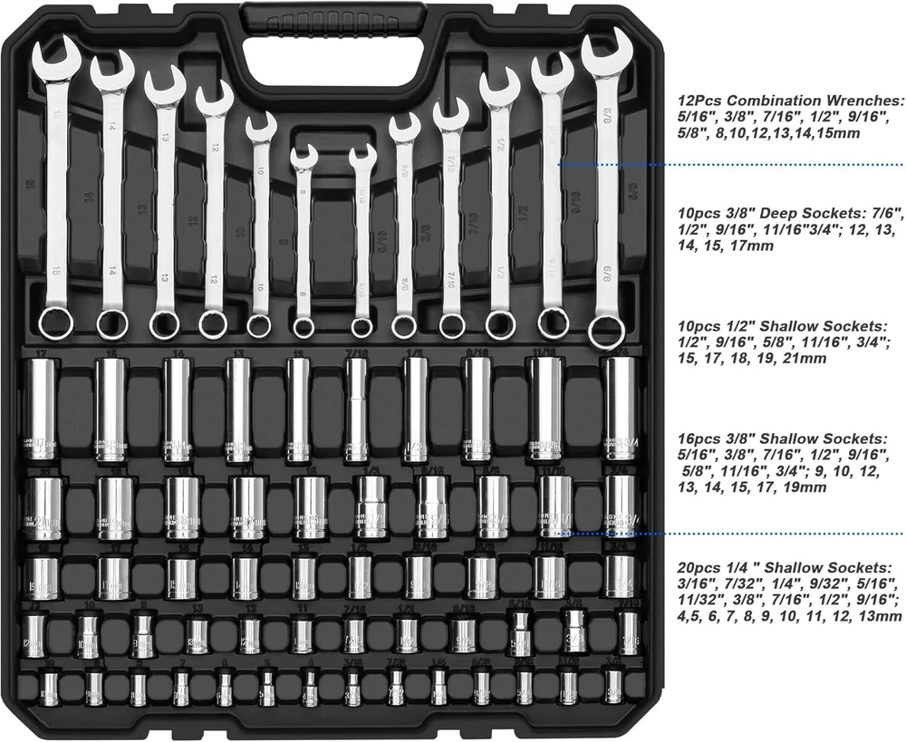 Versatile 240-Piece Mechanics Tool Set with Plastic Case - Perfect Gift Choice ‹ › ‹ › ‹ › ‹ › ‹ › ‹ › ‹ › ‹ › ‹ › ‹ › Versatile 240-Piece Mechanics Tool Set Complete Assortment of Tools High quality metal, includes sockets and wrenches made of premium chrome vanadium steel to guard against corrosion. Forged body allows for enhanced torque, unmatched strength, and exceptional durability. Why Choose Our Mechanics Tool Set? This complete set offers the essential tools needed for everyday household and automotive repairs. An ideal companion for your apartment, garage, workshop, or vehicle—ensuring you're equipped for any task. Features a wide variety of sizes ranging from SAE to metric, including combination wrenches, socket sets, driver ratchets, and screwdriver bits. Product Features: 240-piece tool kit: Includes an extensive array of tools such as 1/4”, 3/8”, & 1/2” socket sizes, an adjustable wrench, pump pliers, long nose pliers, and more. Convenient Toolbox: Tools are neatly organized in a sturdy, durable plastic case, measuring 18"(L) x 16"(W) x 3.5"(H). Molded compartments ensure each tool is protected and readily accessible. Perfect Gift Selection: With its versatile design and ease of transport, this tool set makes an ideal gift for men and women alike. Safety Tip: To avoid any spills, ensure that the toolbox lid with the "" logo faces upwards when opening. Benefits: Durable construction ensures lasting performance for years of reliable service. All-in-one solution for your automotive and home needs. Compact and organized for easy transport and storage. Elevate your repair game and be prepared for any task that comes your way. Order your Versatile 240-Piece Mechanics Tool Set today and empower your toolkit with unmatched strength and versatility! Shipping Free & Fast Shipping - We offer free shipping to most of the USA with a normal delivery time of 3-7 days. However, due to the current situation, additional delivery time (up to 3 weeks) may be required for some items. Alternative Carriers - We may use alternative carriers (e.g. USPS, FedEx, UPS, etc.) to ensure your package arrives safely and on time. Due to the use of multiple carriers, we are unable to provide a tracking number automatically. Handling Time - Orders are processed and shipped within 1-2 business days of receiving cleared payment. Shipping Restrictions - Shipping to Alaska, Hawaii, Puerto Rico, Guam, and other US territories may incur shipping charges or delivery restrictions. Please contact us before ordering, or your order can be refunded/cancelled. State Restrictions - There may be restrictions based on your state of purchase. For example, certain items may not be shipped to California due to state regulations. Contact for Tracking Updates - If you require tracking updates or have any concerns about the delivery of your order, please feel free to contact us, and we will be happy to assist you. Return 30-Day Hassle-Free Returns - We want you to be completely satisfied with your purchase. If you are not, you can return the item within 30 days of receiving it for a full refund or exchange. Easy Return Process - To start a return, simply contact us and we will provide you with a prepaid return shipping label and detailed instructions. Restocking Fee - There are no restocking fees for returns. However, the buyer is responsible for return shipping costs if the return is not due to a seller's error. Refund Processing Time - Refunds will be processed within 5 business days of receiving the returned item in its original condition. Payment We accept all major credit cards, PayPal, and Apple Pay for your convenience. Your payment information is secure and encrypted to ensure a safe and seamless transaction. Please complete your payment within 3 days of purchase to avoid any delays in shipping. Feedback Your feedback is extremely important to us. We strive to provide the best products and customer service possible. If you are satisfied with your purchase, please take a moment to leave us a positive review. If you have any concerns or issues with your order, please contact us before leaving negative feedback. We are committed to resolving any problems and ensuring your satisfaction. Contact Us If you have any questions or concerns, please feel free to reach out to our customer support team. You can contact us through the eBay messaging system. We are available Monday to Friday, 9:00 am to 5:00 pm EST, and we will do our best to respond to your inquiry within 24 hours. Thank you for supporting our small family business! UPC: Not Set Model: Mechanics Tool Set Item Width: Mechanics Tool Set Item Length: Mechanics Tool Set Item Height: Mechanics Tool Set Item Diameter: 18 inches Item Weight: 19.1 pounds Unit Quantity: 1 Tools Included: Ratchet,quick release ratchets,3/8" deep & shallow sockets,1/2" shallow sockets,1/4 " shallow sockets,socket extension bars,1/4" magnetic bit driver,screwdriver bits,hex key allen wrenches,combination wrenches,screwdrivers,water pump pliers,adjustable wrench,long nose pliers,fasteners System of Measurement: Both,Metric,Standard (SAE) Brand: Unbranded Type: Mechanics Tool Set Case Type: Box Number of Pieces: 240 Color: Black MPN: Not Set Country/Region of Manufacture: Not Set Finish: Polished Manufacturer Warranty: Not Set Unit Type: lb Case Included: Not Set Personalize: Not Set