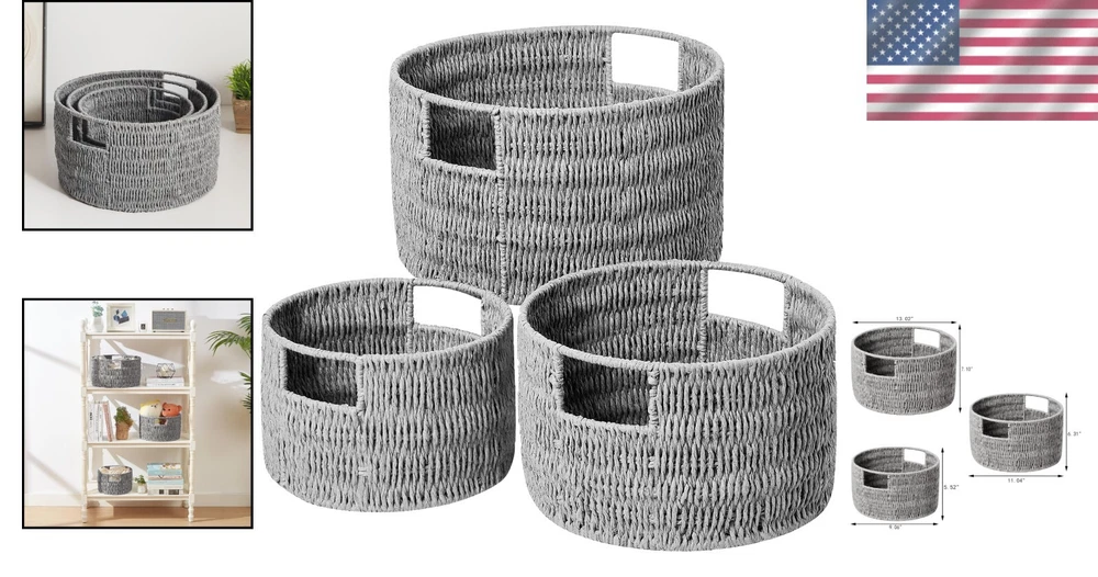 Versatile 3-Pack Round Wicker Baskets - Stylish Grey Organizers for Any Room ‹ › ‹ › ‹ › ‹ › ‹ › ‹ › ‹ › ‹ › ‹ › ‹ › Versatile 3-Pack Round Wicker Baskets Stylish Grey Organizers for Any Room Product Features: Versatile Large Baskets: Offered in three practical sizes to suit every storage need - Large 13.02" x 7.10", Medium 11.04" x 6.31", Small 9.06" x 5.52". Perfect for organizing clothes, bath & beauty products, books, toys, and more. Natural & Durable Material: Hand-woven with 100% natural round paper rope, these baskets are crafted by skilled artisans. Each basket features a sturdy metal frame for enhanced durability. Humanized Design: The stylish grey wicker comes with built-in handles for effortless access and portability. Baskets can be easily stacked or nested, maximizing your space efficiency when not in use. Redefine Your Home: These woven baskets not only serve as functional storage solutions but also complement any home decor. They bring an inviting texture to your space, effectively reducing clutter on shelves or countertops. An ideal handmade gift for loved ones. Exceptional Customer Satisfaction: Have questions or concerns about your storage organizer baskets? Our dedicated customer satisfaction team is always ready to assist you with a smile. Why Choose Our Wicker Baskets? Transform your home organization with the elegance of our Versatile Round Wicker Baskets. Their timeless design, combined with practicality speaks volumes about quality and craftsmanship. Whether in the living room, bathroom, office, or laundry area, elevate your surroundings while keeping clutter at bay. Choose functionality without sacrificing style; order your set of three baskets today and enjoy a harmonious blend of beauty and organization in your home! Shipping Free & Fast Shipping - We offer free shipping to most of the USA with a normal delivery time of 3-7 days. However, due to the current situation, additional delivery time (up to 3 weeks) may be required for some items. Alternative Carriers - We may use alternative carriers (e.g. USPS, FedEx, UPS, etc.) to ensure your package arrives safely and on time. Due to the use of multiple carriers, we are unable to provide a tracking number automatically. Handling Time - Orders are processed and shipped within 1-2 business days of receiving cleared payment. Shipping Restrictions - Shipping to Alaska, Hawaii, Puerto Rico, Guam, and other US territories may incur shipping charges or delivery restrictions. Please contact us before ordering, or your order can be refunded/cancelled. State Restrictions - There may be restrictions based on your state of purchase. For example, certain items may not be shipped to California due to state regulations. Contact for Tracking Updates - If you require tracking updates or have any concerns about the delivery of your order, please feel free to contact us, and we will be happy to assist you. Return 30-Day Hassle-Free Returns - We want you to be completely satisfied with your purchase. If you are not, you can return the item within 30 days of receiving it for a full refund or exchange. Easy Return Process - To start a return, simply contact us and we will provide you with a prepaid return shipping label and detailed instructions. Restocking Fee - There are no restocking fees for returns. However, the buyer is responsible for return shipping costs if the return is not due to a seller's error. Refund Processing Time - Refunds will be processed within 5 business days of receiving the returned item in its original condition. Payment We accept all major credit cards, PayPal, and Apple Pay for your convenience. Your payment information is secure and encrypted to ensure a safe and seamless transaction. Please complete your payment within 3 days of purchase to avoid any delays in shipping. Feedback Your feedback is extremely important to us. We strive to provide the best products and customer service possible. If you are satisfied with your purchase, please take a moment to leave us a positive review. If you have any concerns or issues with your order, please contact us before leaving negative feedback. We are committed to resolving any problems and ensuring your satisfaction. Contact Us If you have any questions or concerns, please feel free to reach out to our customer support team. You can contact us through the eBay messaging system. We are available Monday to Friday, 9:00 am to 5:00 pm EST, and we will do our best to respond to your inquiry within 24 hours. Buy it now and enjoy a pleasant shopping experience! UPC: Not Set Unit Quantity: 3 Material: Metal,Paper Features: Stackable,With Handles,Hand-Woven,Handmade,Sturdy Metal Frame Mounting: Free Standing Brand: Unbranded Item Height: Wicker Storage Basket Item Length: Wicker Storage Basket Item Width: Wicker Storage Basket Type: Storage Basket Capacity: 41 - 80 Quarts Item Depth: 13 in Item Weight: Less Than 2 lb MPN: Not Set Model: Not Set Number of Items in Set: Three-Piece Color: Gray Number in Pack: 3 Shape: Round Number of Compartments: 1 Pattern: Not Set Style: Modern Finish: Natural Original/Reproduction: Not Set Country/Region of Manufacture: Not Set Unit Type: lb Assembly Required: Not Set