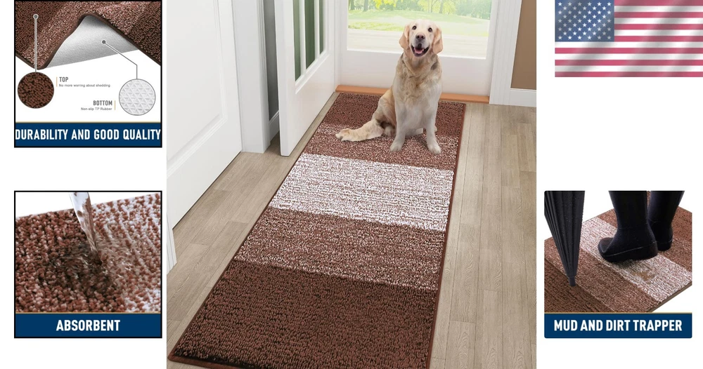 Versatile 48x30 Entryway Dog Mat – Absorbs Moisture, Stylish Striped Design