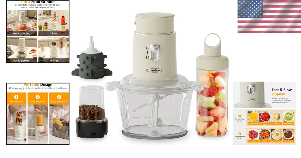 Versatile 4-in-1 Beige Blender & Food Processor - 1.5L Glass Bowl Included ‹ › ‹ › ‹ › ‹ › ‹ › ‹ › ‹ › ‹ › ‹ › ‹ › Versatile 4-in-1 Beige Blender & Food Processor - 1.5L Glass Bowl Included Transform Your Kitchen Experience: This innovative 4-in-1 food chopper is designed to elevate your culinary adventures. Effortlessly handle a multitude of tasks: Grinding meat to perfection Milling grains for fresh flour Juicing fruits for delightful beverages Peeling garlic with ease Portable Design: Enjoy the luxury of convenience with a portable blending cup, allowing you to blend nourishing juices directly into the cup. Simply twist on the lid and take your fresh, healthy juice on the go—no extra containers needed, just pure enjoyment. Effortless Operation: Switching between functions has never been easier. With just a single action, move from blending to grinding coffee or meat, and peeling garlic. The appliance features: 4 ultra-sharp blades 2 efficient speed settings For optimal results, avoid processing hard or fatty foods to extend the meat grinder's lifespan. Enhanced Safety Features: Your safety is paramount. This food processor includes a secure safety lock at the base to prevent accidental starts. Ensure the lock is engaged for safe and effective operation. If the machine isn't running, double-check that the safety lock is in place. Hassle-Free Cleaning: Enjoy quick and easy cleanup with our dishwasher-safe glass bowl, cups, and lid. Spend more time savoring your culinary delights and less time washing up, making your kitchen experience even more enjoyable. Why Choose Our Versatile 4-in-1 Blender? Supercharge your kitchen with the ultimate culinary companion. This multifunctional appliance offers convenience, safety, and efficient performance, making it ideal for busy lifestyles. Elevate your cooking skills and enjoy delicious, fresh meals and juices effortlessly! Don't wait any longer! Order your Versatile 4-in-1 Blender & Food Processor today and experience the transformation in your culinary journey! Shipping Free & Fast Shipping - We offer free shipping to most of the USA with a normal delivery time of 3-7 days. However, due to the current situation, additional delivery time (up to 3 weeks) may be required for some items. Alternative Carriers - We may use alternative carriers (e.g. USPS, FedEx, UPS, etc.) to ensure your package arrives safely and on time. Due to the use of multiple carriers, we are unable to provide a tracking number automatically. Handling Time - Orders are processed and shipped within 1-2 business days of receiving cleared payment. Shipping Restrictions - Shipping to Alaska, Hawaii, Puerto Rico, Guam, and other US territories may incur shipping charges or delivery restrictions. Please contact us before ordering, or your order can be refunded/cancelled. State Restrictions - There may be restrictions based on your state of purchase. For example, certain items may not be shipped to California due to state regulations. Contact for Tracking Updates - If you require tracking updates or have any concerns about the delivery of your order, please feel free to contact us, and we will be happy to assist you. Return 30-Day Hassle-Free Returns - We want you to be completely satisfied with your purchase. If you are not, you can return the item within 30 days of receiving it for a full refund or exchange. Easy Return Process - To start a return, simply contact us and we will provide you with a prepaid return shipping label and detailed instructions. Restocking Fee - There are no restocking fees for returns. However, the buyer is responsible for return shipping costs if the return is not due to a seller's error. Refund Processing Time - Refunds will be processed within 5 business days of receiving the returned item in its original condition. Payment We accept all major credit cards, PayPal, and Apple Pay for your convenience. Your payment information is secure and encrypted to ensure a safe and seamless transaction. Please complete your payment within 3 days of purchase to avoid any delays in shipping. Feedback Your feedback is extremely important to us. We strive to provide the best products and customer service possible. If you are satisfied with your purchase, please take a moment to leave us a positive review. If you have any concerns or issues with your order, please contact us before leaving negative feedback. We are committed to resolving any problems and ensuring your satisfaction. Contact Us If you have any questions or concerns, please feel free to reach out to our customer support team. You can contact us through the eBay messaging system. We are available Monday to Friday, 9:00 am to 5:00 pm EST, and we will do our best to respond to your inquiry within 24 hours. Buy it now and enjoy a pleasant shopping experience! UPC: Not Set Unit Quantity: 5.94 Components Included: Blender,Lid,0.2L Coffee Grinder Cup,Garlic Peeler,0.4L Juicing Cup,Glass Bowl Appliance Uses: Juice,Juicing Fruits,Grinding Meat,Milling Grains,Peeling Garlic Features: Dishwasher Safe,Portable,Portable Design,Easy Operation,Enhanced Safety,Easy Cleaning,Safety Lock Appliance Capabilities: Blend,Grind,Grind Meat,Milling Grains,Peel Garlic Brand: Unbranded Model: Blender and Food Processor Type: Blender Color: Beige Number of Speeds: 2 Capacity: 1.5 L Material: Glass Power: 250 W Power Source: Electric Manufacturer Warranty: Not Set MPN: Not Set Number of Settings/Programs: 2 Number of Items: 4 Number of Blades: 4 Item Height: Not Set Item Width: Not Set Item Depth: 12.2 in Country/Region of Manufacture: Not Set Voltage: 120 V Item Weight: 5.94 lbs Unit Type: lb