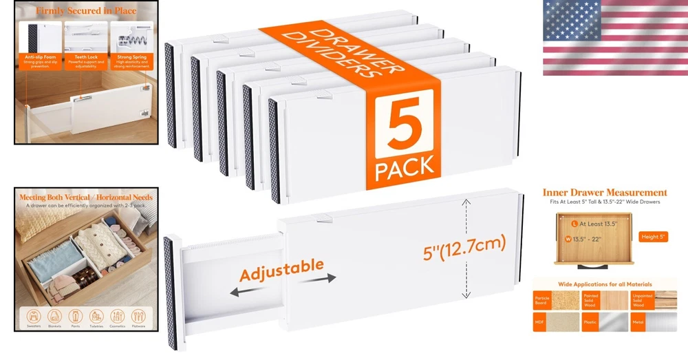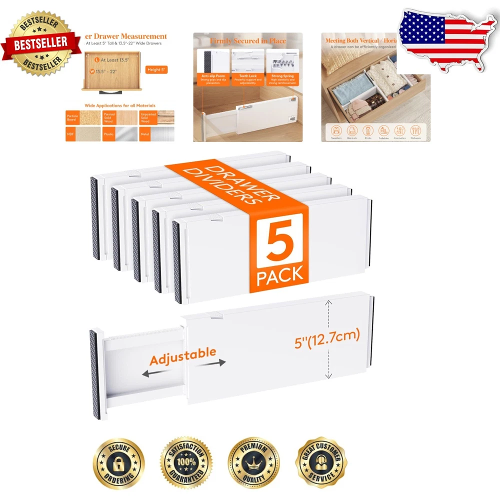Versatile 5 Pack Drawer Organizers - Adjustable for Clothes, Kitchen, and Office ‹ › ‹ › ‹ › ‹ › ‹ › ‹ › ‹ › ‹ › ‹ › ‹ › Versatile 5 Pack Drawer Organizers - Adjustable for Clothes, Kitchen, and Office Features: Expandable & Adjustable: Our drawer dividers easily fit into most drawers and cabinets, measuring 0.8" in width, 5" in height, and adjustable in length from 13.5" to 22". Easy to Use: Adjust the length with the top button for a secure fit, providing strong spring tension that keeps the drawer organizers upright. Advanced Design: Made from stable ABS material with high-quality EVA foam sponges at the ends to prevent scratches and damage, leaving no trace or residue. Multipurpose: Perfect for any drawer in your home or office, ideal for organizing clothes, kitchen utensils, office supplies, makeup, and bathroom clutter. Customizable Placement: Available in sets of 5 or 8, arrange them vertically or horizontally to suit your organizing needs. Benefits: Transform chaotic drawers into organized spaces. Accommodate a variety of items, making it simple to find what you need. Durable and reliable materials ensure long-lasting use. Easy installation and retraction mean no fuss for you! Customizable to fit your unique storage needs for ultimate flexibility. Why choose our Versatile 5 Pack Drawer Organizers? Are you overwhelmed by cluttered drawers filled with miscellaneous items? Our Versatile Drawer Organizers are here to save the day! With adjustable lengths and a patented design, these storage solutions offer a tailored organizing experience. Made with high-quality materials that protect your drawer interiors, they ensure that your belongings remain in tip-top shape while providing maximum functionality. Transform your spaces into the epitome of organization and ease—order your set of Versatile Drawer Organizers today! Shipping Free & Fast Shipping - We offer free shipping to most of the USA with a normal delivery time of 3-7 days. However, due to the current situation, additional delivery time (up to 3 weeks) may be required for some items. Alternative Carriers - We may use alternative carriers (e.g. USPS, FedEx, UPS, etc.) to ensure your package arrives safely and on time. Due to the use of multiple carriers, we are unable to provide a tracking number automatically. Handling Time - Orders are processed and shipped within 1-2 business days of receiving cleared payment. Shipping Restrictions - Shipping to Alaska, Hawaii, Puerto Rico, Guam, and other US territories may incur shipping charges or delivery restrictions. Please contact us before ordering, or your order can be refunded/cancelled. State Restrictions - There may be restrictions based on your state of purchase. For example, certain items may not be shipped to California due to state regulations. Contact for Tracking Updates - If you require tracking updates or have any concerns about the delivery of your order, please feel free to contact us, and we will be happy to assist you. Return 30-Day Hassle-Free Returns - We want you to be completely satisfied with your purchase. If you are not, you can return the item within 30 days of receiving it for a full refund or exchange. Easy Return Process - To start a return, simply contact us and we will provide you with a prepaid return shipping label and detailed instructions. Restocking Fee - There are no restocking fees for returns. However, the buyer is responsible for return shipping costs if the return is not due to a seller's error. Refund Processing Time - Refunds will be processed within 5 business days of receiving the returned item in its original condition. Payment We accept all major credit cards, PayPal, and Apple Pay for your convenience. Your payment information is secure and encrypted to ensure a safe and seamless transaction. Please complete your payment within 3 days of purchase to avoid any delays in shipping. Feedback Your feedback is extremely important to us. We strive to provide the best products and customer service possible. If you are satisfied with your purchase, please take a moment to leave us a positive review. If you have any concerns or issues with your order, please contact us before leaving negative feedback. We are committed to resolving any problems and ensuring your satisfaction. Contact Us If you have any questions or concerns, please feel free to reach out to our customer support team. You can contact us through the eBay messaging system. We are available Monday to Friday, 9:00 am to 5:00 pm EST, and we will do our best to respond to your inquiry within 24 hours. Buy it now and enjoy a pleasant shopping experience! UPC: Not Set Unit Quantity: 5.0 Material: Plastic,ABS,EVA foam Mounting: Free Standing Features: Adjustable,Expandable Care Instructions: Clean with Damp Cloth Brand: Unbranded Item Height: Drawer Dividers Item Length: Drawer Dividers Item Width: Drawer Dividers Type: Drawer Organizer Number of Shelves: 1 Item Depth: 13.5 in Item Weight: 3.68 lb MPN: Not Set Model: Not Set Number of Items in Set: Five-Piece Color: White Number in Pack: 5 Number of Compartments: 5 Finish: Glossy Style: Modern Country/Region of Manufacture: Not Set Pattern: Not Set Original/Reproduction: Not Set Unit Type: Unit Assembly Required: Not Set