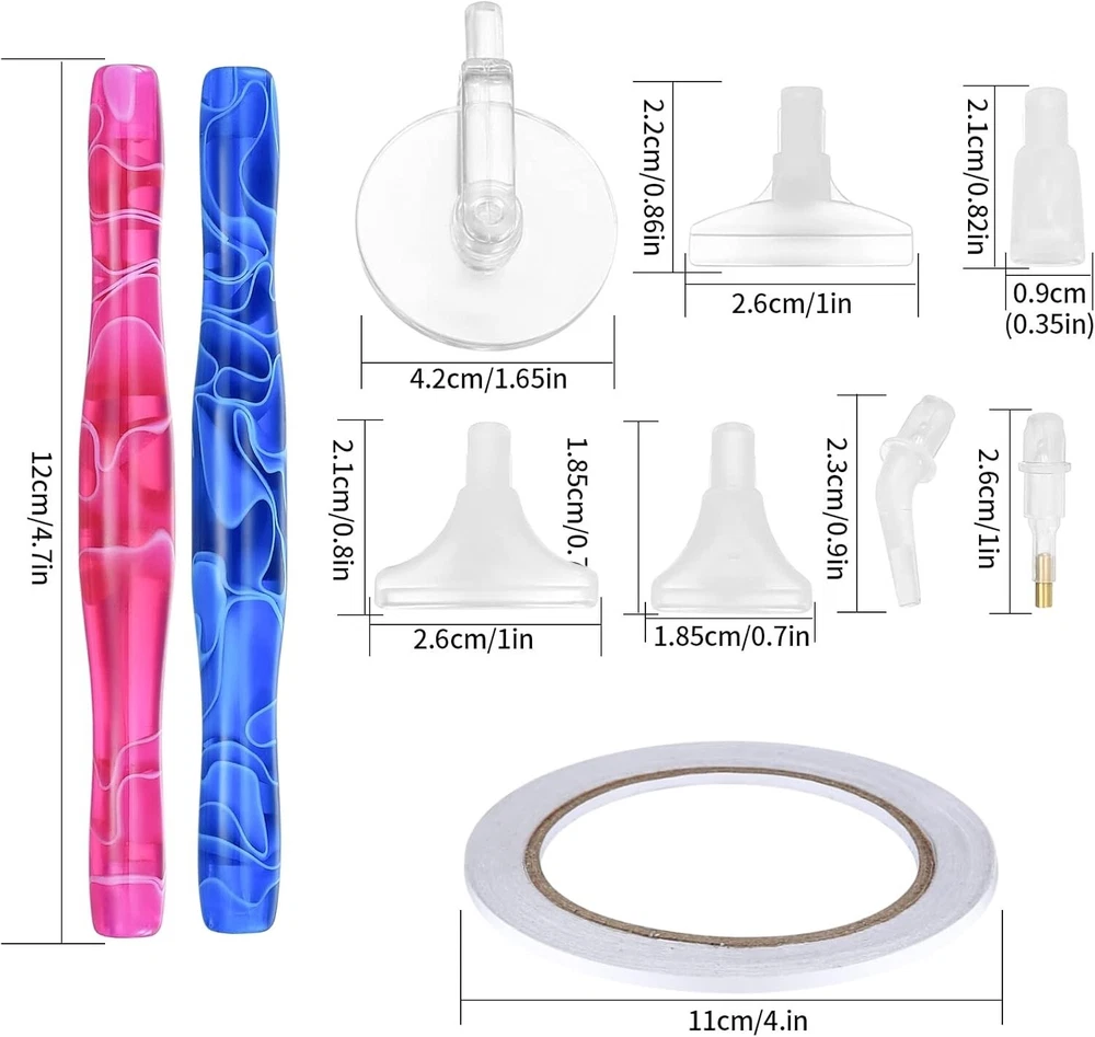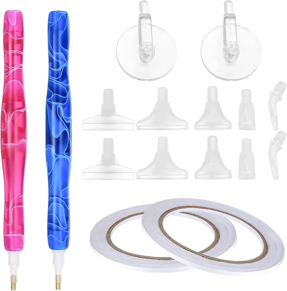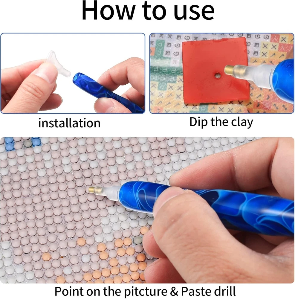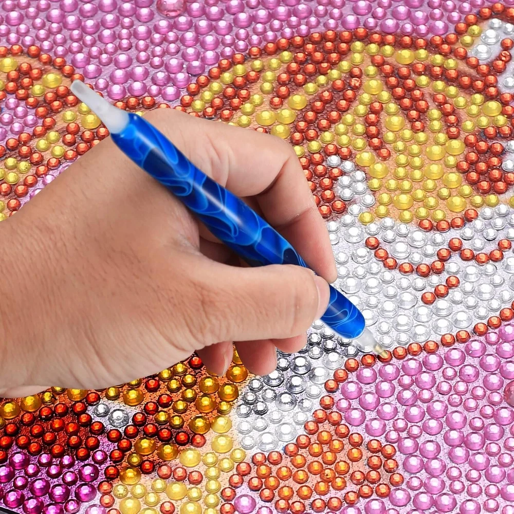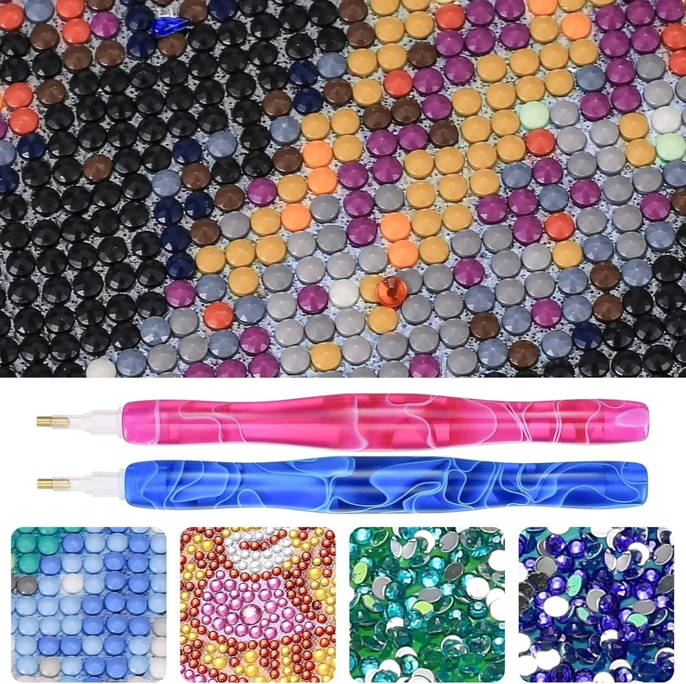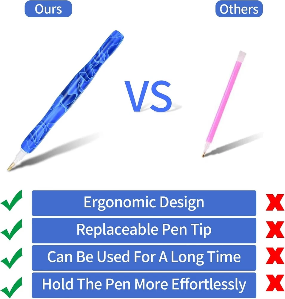 About this item Premium Material: The 5D diamond art pens are made of handmade resin material and brass metal pen head, with soft design that is comfortable for you to grip, finer rigidity due to long service life. Comfortable Design: The diamond art painting accessories pens is lightweight, so you won't feel uncomfortable when holding it. The curved design of the pen body is ergonomic and suitable for the pen holding position. Easy to Use: The drilling speed of 5D diamond arts and crafts painting supplies are twice that of ordinary pens, allowing you to do DIY diamond art painting more efficiently and quickly. Wide Applications: This diamond art accessory can be used for DIY, nail art diamond decoration, phone decoration and other diamond art. Easy to pick up small diamonds, pearls and jewelry, but also cross stitch, embroidery. Package Includes: You will get 2 sets of resin 5D diamond art painting pen accessories in dark blue and red color, equipped with spare drill pen heads, enough for your daily use.