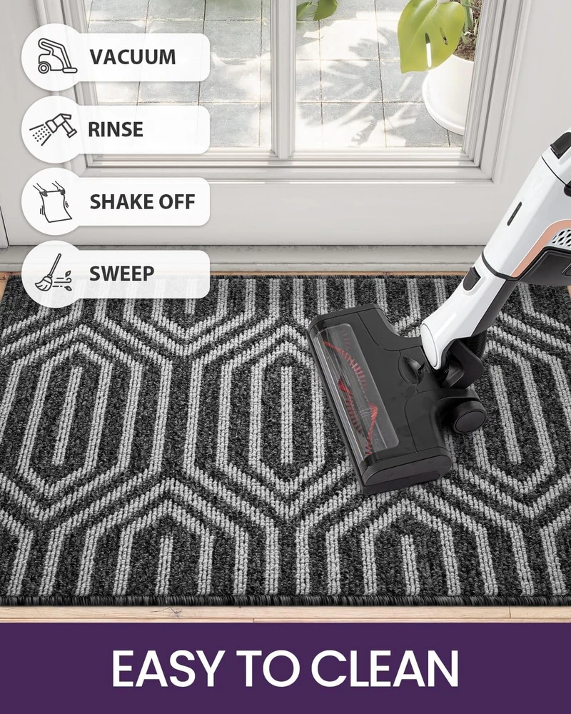 Item Thickness: 0.25 Inches Department: Adults, Teens, Kids Personalize: No Shape: Rectangle Pile Height: Low Pile Style: Modern Personalized: No Min. Required Door Width: 32 Inches Construction Type: Machine Made Product Dimensions: 48"l X 32"w Is Stain Resistant: Yes Rug Form Type: Doormat UPC: Does Not Apply gtin13: Does Not Apply Material: Polypropylene, Rubber Color: Black Number Of Pieces: 1 Size: 32 x 48 in Product Care Instructions: Machine Wash Features: Non-Slip, Easy to Clean, Stain Resistant, Fade Resistant, Washable Water Resistance Level: Water Resistant Room: Any Room, Kitchen, Conference Room, Bedroom, Home Office, Hallway Theme: Geometric Brand: Unbranded Pile Type: Low Pile Weave Type: Machine Made Indoor/outdoor Usage: Outdoor, Indoor Item Weight: 2.6 Pounds Weave: Machine-Woven Type: Doormat Back Material Type: Rubber Pattern: Geometric Era: 21st Century (2000-Now)