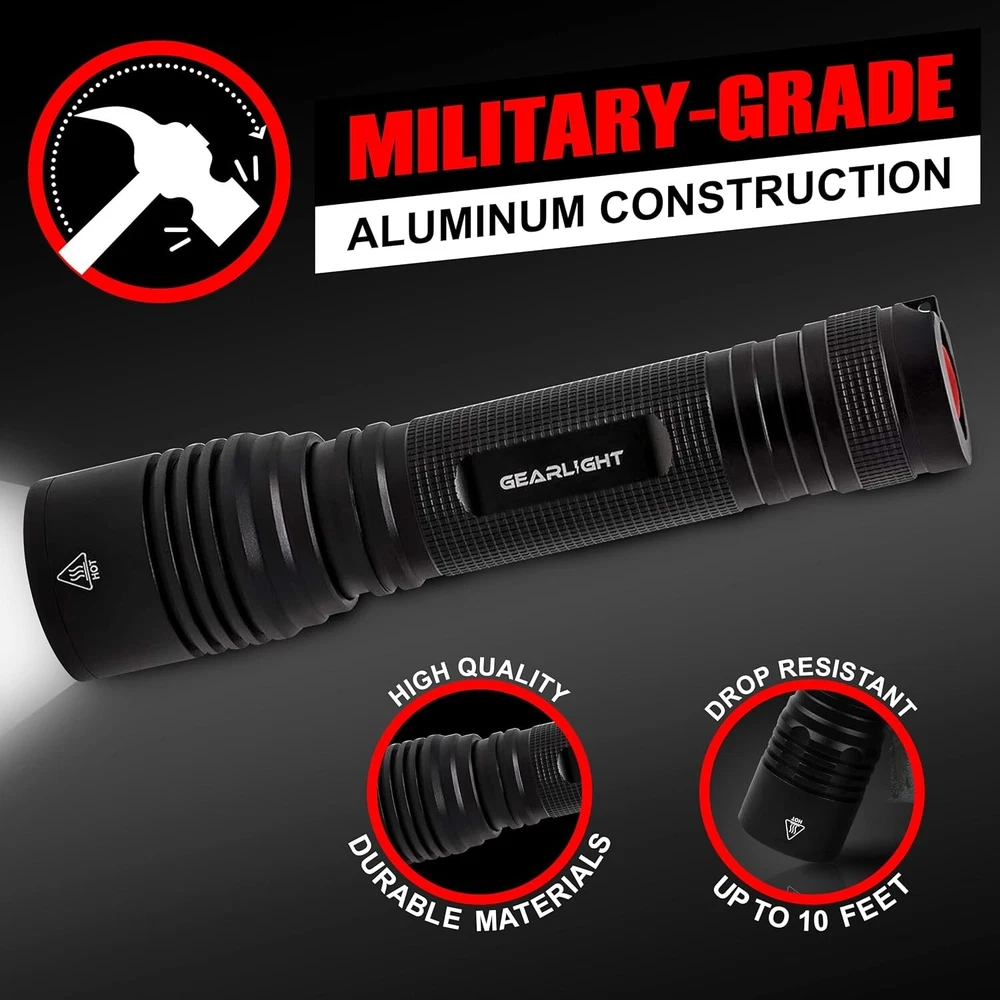 Number of Batteries: 1 Recommended Uses For Product: Hunting Special Features: Lightweight, High Power, Durable, Rechargeable Light Source Wattage: 12 Watts Number of Lights: 1-3 Brightness: 1200 Lumen Color: Tactical Black Style: Mid Size High-powered Led Flashlight Wattage: 12 Watts Batteries Included?: No Features: Batteries Included, Rechargeable, Waterproof, Handheld, Clip On, Lightweight, High Power, Durable Finish Types: Aluminum Battery Description: Aa Number of LEDs: Not specified Operating Range: Not specified Product Dimensions: 7.5"d X 1.3"w X 1.3"h Special Feature: Lightweight, High Power, Durable, Rechargeable Voltage: None Power Source: Battery gtin13: Does Not Apply Material: Aluminum IP Rating: Not specified Type: Flashlight Batteries Required?: Yes Water Resistance Level: Water Resistant Item Weight: 11.2 ounces Lighting Technology: LED Finish Type: Aluminum Operating Time: Not specified Item Height: LED Flashlight UPC: Does Not Apply Light Source Type: Led Personalize: No Lumens: 1200 Brand: Unbranded Item Length: LED Flashlight Battery Technology: AA