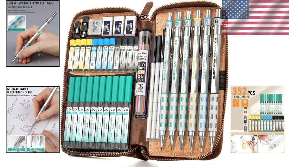Versatile Mechanical Pencil Kit - 40PCS with Detailed Leads and Leather Storage ‹ › ‹ › ‹ › ‹ › ‹ › ‹ › ‹ › ‹ › ‹ › Versatile Mechanical Pencil Kit - 40PCS with Detailed Leads and Leather Storage Step into the realm of creativity with our exceptional 40PCS Mechanical Pencil Kit - perfectly suited for artists, students, and professionals alike. Inclusive Artist Drawing Pencil Set: 3pcs Mechanical Pencils in 0.5mm, 0.7mm, and 0.9mm sizes 3pcs 2.0mm Lead Pencils 23 tubes and a staggering 352pcs Graphite Lead Refills in varying grades (6B, 4B, 2B, HB, 2H, 4H, and Colors) 3pcs 4B Soft Erasers 1 Kneaded Eraser 27pcs Eraser Refills and 3 Sharpeners Premium Mechanical Pencil Design: All-metal hexagonal barrel for a sleek and durable look Visible indicator to easily distinguish different lead sizes Brass mechanism coupled with a retractable tip for unparalleled precision Optimized weight distribution and soft rubber inlays for maximum comfort during long drawing sessions Improved Lead Quality: New low-breakage formula for a smoother writing experience Includes an extensive variety of lead refills: 192pcs 0.5/0.7/0.9mm HB, 64pcs 0.5/0.7/0.9mm 2B, and 60pcs 2.0mm options (6B, 4B, 2B, HB, 2H, 4H) along with 36pcs Colored leads Abundant Erasers & Sharpeners: Equipped with 3 premium 4B erasers and one kneaded eraser for precision erasing and blending 27 cap eraser refills for ongoing support 3 sharpeners specially designed for 2.0mm lead Perfect Gift for Professionals: This stunning mechanical pencil set makes an ideal gift for artists, engineers, CAD drafting professionals, teachers, and students. Housed in a meticulously crafted leather storage pouch, it offers both elegance and portability, ensuring you are always ready to unleash your creativity. Elevate your artistic journey with our Versatile Mechanical Pencil Kit - where every stroke brings your imagination to life! Shipping Free & Fast Shipping - We offer free shipping to most of the USA with a normal delivery time of 3-7 days. However, due to the current situation, additional delivery time (up to 3 weeks) may be required for some items. Alternative Carriers - We may use alternative carriers (e.g. USPS, FedEx, UPS, etc.) to ensure your package arrives safely and on time. Due to the use of multiple carriers, we are unable to provide a tracking number automatically. Handling Time - Orders are processed and shipped within 1-2 business days of receiving cleared payment. Shipping Restrictions - Shipping to Alaska, Hawaii, Puerto Rico, Guam, and other US territories may incur shipping charges or delivery restrictions. Please contact us before ordering, or your order can be refunded/cancelled. State Restrictions - There may be restrictions based on your state of purchase. For example, certain items may not be shipped to California due to state regulations. Contact for Tracking Updates - If you require tracking updates or have any concerns about the delivery of your order, please feel free to contact us, and we will be happy to assist you. Return Please see our eBay Return Policy. Thank you. Payment We accept all major credit cards, PayPal, and Apple Pay for your convenience. Your payment information is secure and encrypted to ensure a safe and seamless transaction. Please complete your payment within 3 days of purchase to avoid any delays in shipping. Feedback Your feedback is extremely important to us. We strive to provide the best products and customer service possible. If you are satisfied with your purchase, please take a moment to leave us a positive review. If you have any concerns or issues with your order, please contact us before leaving negative feedback. We are committed to resolving any problems and ensuring your satisfaction. Contact Us If you have any questions or concerns, please feel free to reach out to our customer support team. You can contact us through the eBay messaging system. We are available Monday to Friday, 9:00 am to 5:00 pm EST, and we will do our best to respond to your inquiry within 24 hours. Thank you for supporting our small family business! Features: Lead Protection Sleeve,Retractable Tip,Knurled Grip,Visible Lead Indicator,Brass Mechanism,Soft Rubber Inlays Brand: Unbranded Lead Diameter: 0.5 mm Material: Leather Type: Mechanical Pencil Lead Grade: HB Country/Region of Manufacture: Not Set Vintage: Not Set