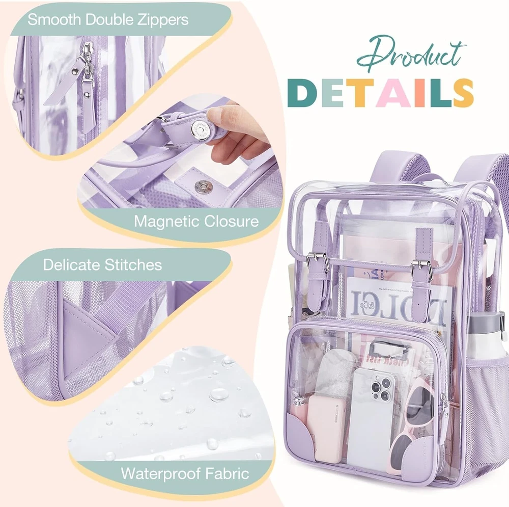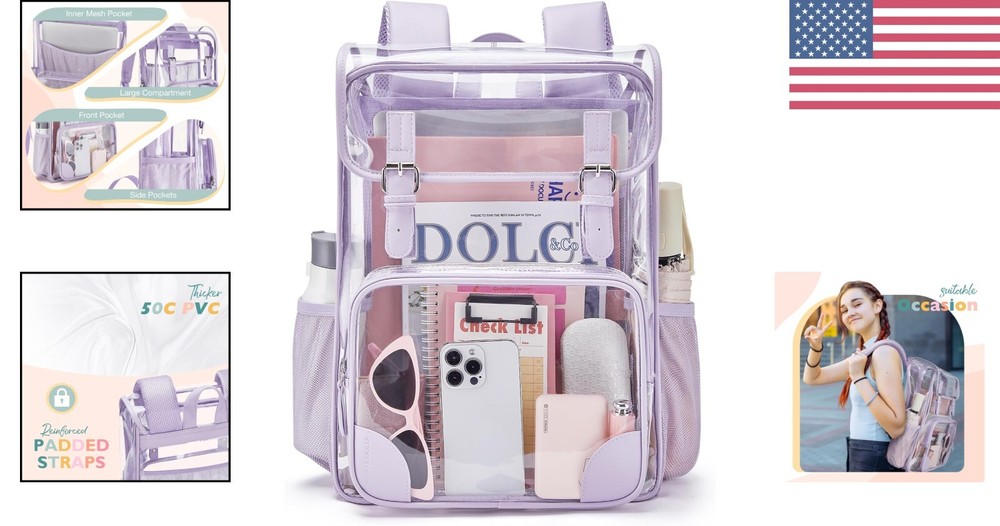 Versatile PVC Double Compartment Clear Backpack - Perfect for Travel & School ‹ › ‹ › ‹ › ‹ › ‹ › ‹ › ‹ › ‹ › Versatile PVC Double Compartment Clear Backpack Perfect for Travel & School Dimensions: Large Size: L12.2" × W4.7" × H16.5" Features: Large flap compartment accommodates a 15.6-inch laptop and daily essentials. Fixed elastic mesh pocket for supreme organization. Front zipper pocket and two side mesh pockets for quick access to essentials. Constructed from thickened, water-resistant, and cold-proof PVC material. Reinforced strap stitches prevent tearing, ensuring durability. Two S-shaped padded shoulder straps for comfort with reduced shoulder pressure. Adjustable straps suitable for both teens and adults. Stylish flap design trimmed with PU leather for a unique touch. Benefits: Ample space to carry important items. Water-resistant material protects contents from unexpected spills. Comfortable fit allows for extended wear without strain. Fashion-forward design suitable for various occasions. Quality assurance with a dedicated after-sales service. Why choose our Versatile PVC Double Compartment Clear Backpack? Elevate your travel and school experience with our Versatile PVC Double Compartment Clear Backpack. Designed with ample space and organizational features, this stylish bag is not just functional; it's a fashion statement. The water-resistant design ensures your belongings are safe from the elements, while the padded straps offer unparalleled comfort whether you’re commuting to class or jet-setting across the globe. With a commitment to quality, we proudly offer 12-month quality assurance. Ideal for ages 10 and above. Embrace the blend of style and utility - order your backpack today! Shipping Free & Fast Shipping - We offer free shipping to most of the USA with a normal delivery time of 3-7 days. However, due to the current situation, additional delivery time (up to 3 weeks) may be required for some items. Alternative Carriers - We may use alternative carriers (e.g. USPS, FedEx, UPS, etc.) to ensure your package arrives safely and on time. Due to the use of multiple carriers, we are unable to provide a tracking number automatically. Handling Time - Orders are processed and shipped within 1-2 business days of receiving cleared payment. Shipping Restrictions - Shipping to Alaska, Hawaii, Puerto Rico, Guam, and other US territories may incur shipping charges or delivery restrictions. Please contact us before ordering, or your order can be refunded/cancelled. State Restrictions - There may be restrictions based on your state of purchase. For example, certain items may not be shipped to California due to state regulations. Contact for Tracking Updates - If you require tracking updates or have any concerns about the delivery of your order, please feel free to contact us, and we will be happy to assist you. Return 30-Day Hassle-Free Returns - We want you to be completely satisfied with your purchase. If you are not, you can return the item within 30 days of receiving it for a full refund or exchange. Easy Return Process - To start a return, simply contact us and we will provide you with a prepaid return shipping label and detailed instructions. Restocking Fee - There are no restocking fees for returns. However, the buyer is responsible for return shipping costs if the return is not due to a seller's error. Refund Processing Time - Refunds will be processed within 5 business days of receiving the returned item in its original condition. Payment We accept all major credit cards, PayPal, and Apple Pay for your convenience. Your payment information is secure and encrypted to ensure a safe and seamless transaction. Please complete your payment within 3 days of purchase to avoid any delays in shipping. Feedback Your feedback is extremely important to us. We strive to provide the best products and customer service possible. If you are satisfied with your purchase, please take a moment to leave us a positive review. If you have any concerns or issues with your order, please contact us before leaving negative feedback. We are committed to resolving any problems and ensuring your satisfaction. Contact Us If you have any questions or concerns, please feel free to reach out to our customer support team. You can contact us through the eBay messaging system. We are available Monday to Friday, 9:00 am to 5:00 pm EST, and we will do our best to respond to your inquiry within 24 hours. Buy it now and enjoy a pleasant shopping experience! UPC: Not Set Strap Drop: Clear Backpack Unit Quantity: 1 Material: PVC Theme: School Lining Material: Clear Backpack Features: Adjustable Strap,Lightweight,Pockets,Waterproof Handle/Strap Material: Not Set Character: Not Set Closure: Zip Customized: Not Set Occasion: Casual Brand: Unbranded Style: Backpack Department: Clear Backpack Color: Purple Size: Large Pattern: Not Set Bag Width: Not Set Bag Height: Not Set Bag Depth: 4.7 in Product Line: Not Set Fabric Type: Not Set Country/Region of Manufacture: Not Set Hardware Material: Not Set Handle Style: Shoulder Strap Model: Not Set Year Manufactured: Not Set MPN: Not Set Unit Type: lb Vintage: Not Set Handmade: Not Set Personalize: Not Set