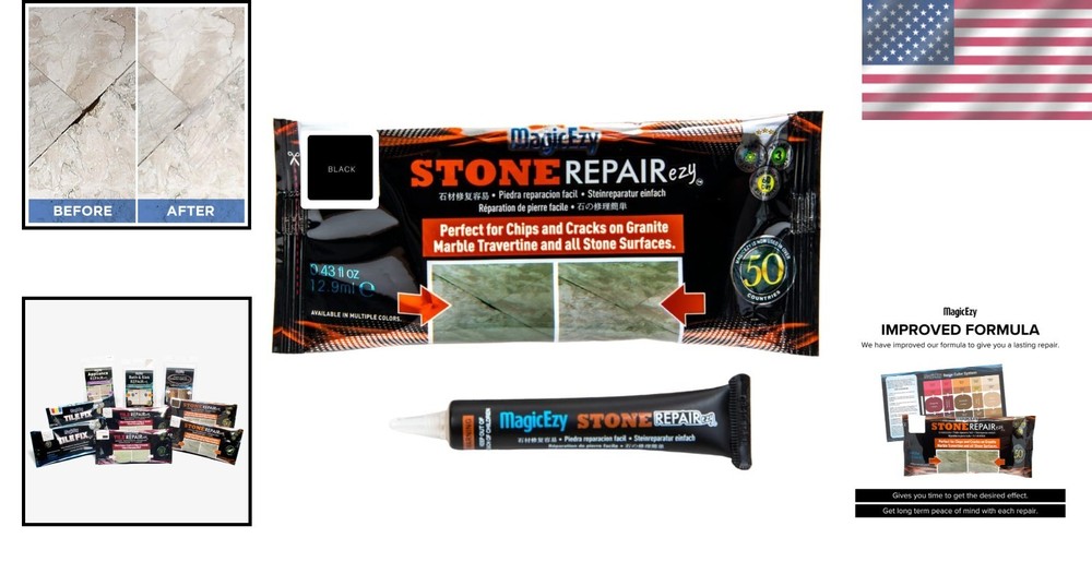 Versatile Stone Repair Ezy: Instant Solution for Quartz, Marble & Granite Chips ‹ › ‹ › ‹ › ‹ › ‹ › ‹ › Versatile Stone Repair Ezy Instant Solution for Quartz, Marble & Granite Chips Features: Fixes All Types of Stone Damage: Perfect for chipped marble, cracked granite, and flaws in all stone surfaces including Corian, Caesarstone, travertine, quartz, and even ceramic and porcelain tiles. Super Easy Repairs: Experience a no-mess solution requiring no prep work or sanding. Simply clean the surface, apply, level, and wipe away smears. Marble or Granite Seam Filler: Use the clear or matching color as a seam filler for your stone countertop or worktop, ensuring a seamless finish. Mix and Match Colors: Achieve a perfect blend with your multi-color stone surfaces. Easily match diverse grained marble, granite, travertine, quartz, and limestone with our specially designed kits. Flexible Finish: Dries to a smooth glossy finish that adapts easily to matte, giving you the versatility to create your desired aesthetic. Safe to Use: Our formula is water-based and non-toxic, making it safe for any household use. Benefits: Quick and efficient repairs without the need for sanding. Restores the beauty of your stone surfaces effortlessly. Compatible with a variety of materials, providing a comprehensive solution for your repair needs. Water-based and non-toxic for peace of mind. Why Choose Versatile Stone Repair Ezy? Bid farewell to unsightly chips and cracks with the Versatile Stone Repair Ezy! This instant solution is tailored for anyone looking to restore their stone surfaces with minimal fuss and maximum results. Enjoy the easy application and rapid results that ensure your quartz, marble, or granite surfaces look as good as new. Don’t let stone damage diminish the elegance of your surfaces. Order your Versatile Stone Repair Ezy today and bring back the pristine beauty of your interiors effortlessly! Shipping Free & Fast Shipping - We offer free shipping to most of the USA with a normal delivery time of 3-7 days. However, due to the current situation, additional delivery time (up to 3 weeks) may be required for some items. Alternative Carriers - We may use alternative carriers (e.g. USPS, FedEx, UPS, etc.) to ensure your package arrives safely and on time. Due to the use of multiple carriers, we are unable to provide a tracking number automatically. Handling Time - Orders are processed and shipped within 1-2 business days of receiving cleared payment. Shipping Restrictions - Shipping to Alaska, Hawaii, Puerto Rico, Guam, and other US territories may incur shipping charges or delivery restrictions. Please contact us before ordering, or your order can be refunded/cancelled. State Restrictions - There may be restrictions based on your state of purchase. For example, certain items may not be shipped to California due to state regulations. Contact for Tracking Updates - If you require tracking updates or have any concerns about the delivery of your order, please feel free to contact us, and we will be happy to assist you. Return 30-Day Hassle-Free Returns - We want you to be completely satisfied with your purchase. If you are not, you can return the item within 30 days of receiving it for a full refund or exchange. Easy Return Process - To start a return, simply contact us and we will provide you with a prepaid return shipping label and detailed instructions. Restocking Fee - There are no restocking fees for returns. However, the buyer is responsible for return shipping costs if the return is not due to a seller's error. Refund Processing Time - Refunds will be processed within 5 business days of receiving the returned item in its condition. Payment We accept all major credit cards, PayPal, and Apple Pay for your convenience. Your payment information is secure and encrypted to ensure a safe and seamless transaction. Please complete your payment within 3 days of purchase to avoid any delays in shipping. Feedback Your feedback is extremely important to us. We strive to provide the best products and customer service possible. If you are satisfied with your purchase, please take a moment to leave us a positive review. If you have any concerns or issues with your order, please contact us before leaving negative feedback. We are committed to resolving any problems and ensuring your satisfaction. Contact Us If you have any questions or concerns, please feel free to out to our customer support team. You can contact us through the eBay messaging system. We are available Monday to Friday, 9:00 am to 5:00 pm EST, and we will do our best to respond to your inquiry within 24 hours. Buy it now and enjoy a pleasant shopping experience! Series: MagicEzy Stone Repair Ezy Unit Quantity: 0.02 kg Material: Acrylic Room: Bathroom,Kitchen,Living Room Features: Gloss,Water Resistant,Non-toxic,Flexible Finish Installation: Glue Suitable For: Indoor,Residential Color: Black Type: Repair Kit Style: Modern Finish: Glossy Item Weight: 0.02 kg Tile Size: 4.72x0.92 inches Item Thickness: 0.39 inches Number in Pack: 1 Edge Design: Straight Edge Grade: Grade 1 PEI Rating: 0 - No Foot Traffic Break Strength: 90 kg DCOF Rating: 0.42-0.44