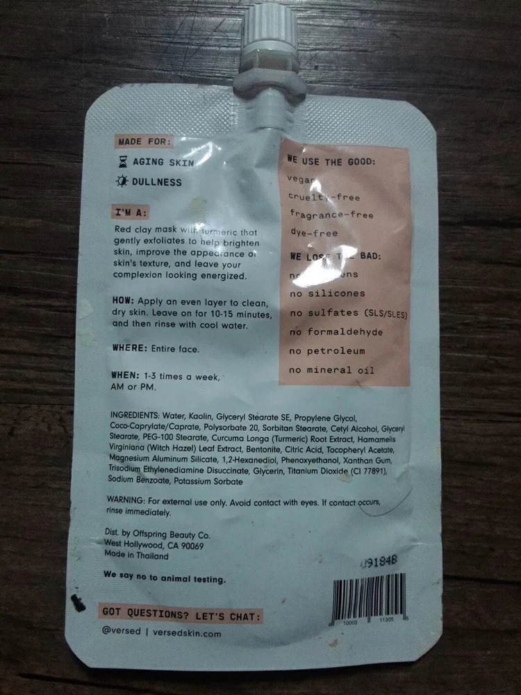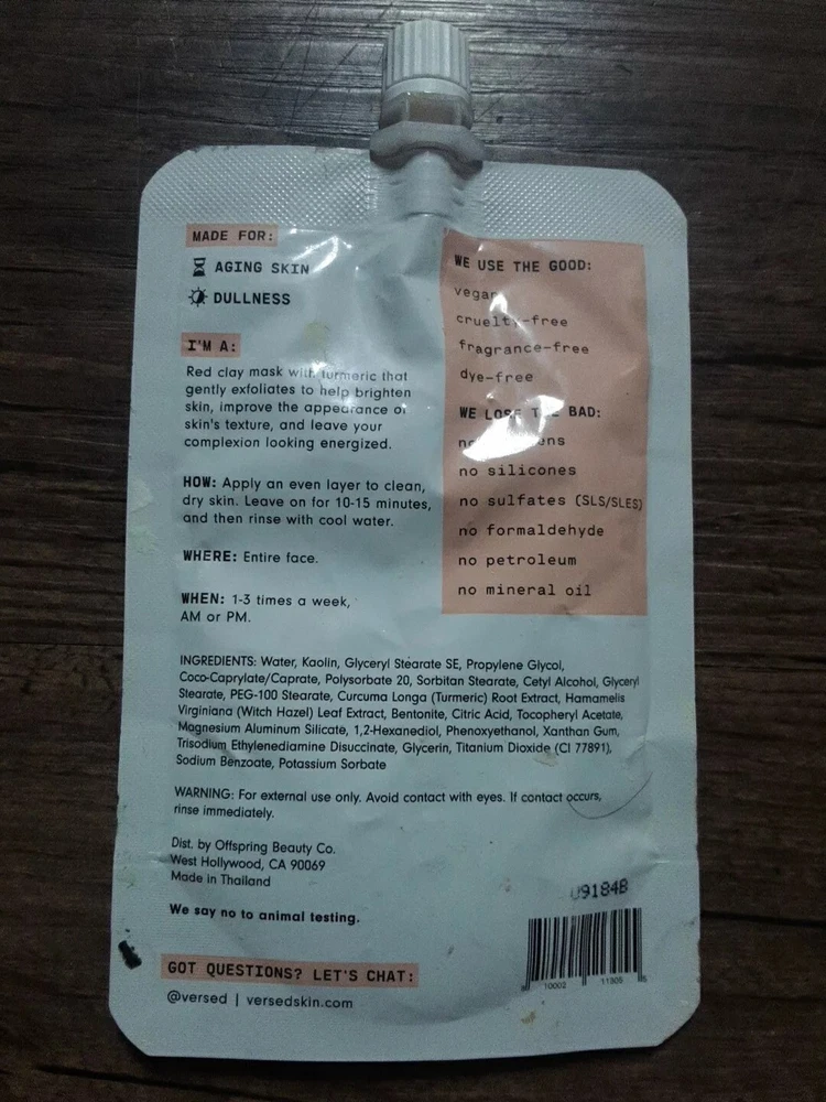 Versed Brightening Finding Clarity Purifying Face Mask 1.5 oz. Pouch New.