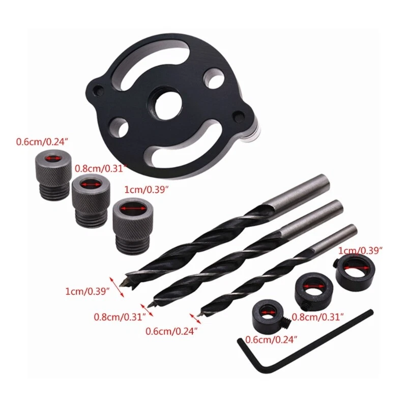 Features: Hand Drill Tools comes with 3 different sizes (6/8/10mm) Drill Bushings in the package, so that to easily drill holes of different sizes and meet various holing needs. This Vertical Centering Pocket Hole Jig Made from Aluminum Alloy, strong strength and long durability. It is wear-resistant, rustproof, solid, and excellent for use. Centerlines ensure accurate alignment when drilling into various surfaces.By holding the drill guide body, easy to get vertical hole drilled without any deviation. You can clean quickly, grooves designs for discharge dust. It can be cleaned and put into a cupboard. It does not occupy a lot of space and can be kept well. This is a set of drill guide tools for the fixation and centering while drilling and woodworking, great for fixing on all kinds of on board of different thickness. Specifications: Material:Alloy Quantity:4Pcs/Set,11Pcs/Set Drill Diameter:6/8/10mm (0.2''/0.3''/0.4'') Packing Size:Approx.60mm/2.36''x60mm/2.36''x50mm/1.97'' Package Includes: 1Set Centering Doweling Jig note: Please allow 1mm errors due to manual measurement. Due to the difference between different monitors, the picture may not reflect the actual color of the item.