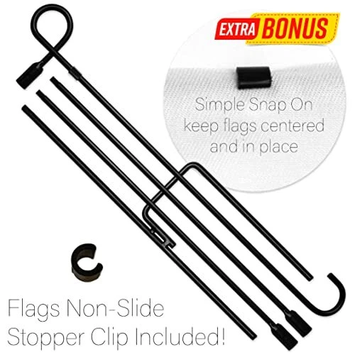 PROUDLY Made In USA - Package And Product Designed In California PURCHASE WITH CONFIDENCE - From 's US Authorized Resellers MADE OF DURABLE - 100% Thick Polyester Fabric construction helps resist the wear and tear from frequent use TEXT READABLE BOTH SIDES - Garden Flag Set Double-Sided Print DURABLE FLAG - Double stitching panels on multiple rows and high quality Sleeve to provide lasting strength VIBRANT COLORS - With UV-Resistant Maintains Its Colors All Season Long FEATURES - Free Garden Flag Hardware Included!