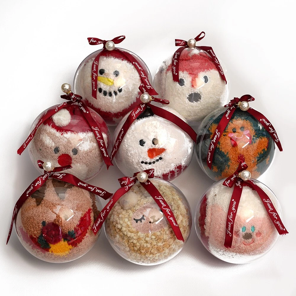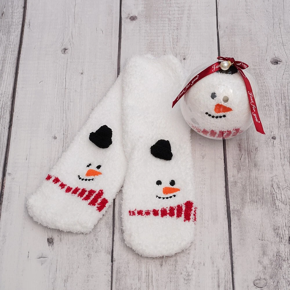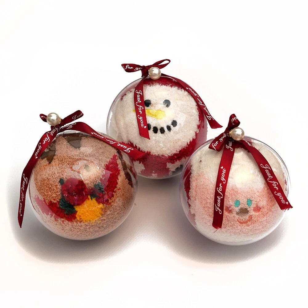 Pattern: Christmas Material: Fabric Brand: Christmas Socks Shape: round clear ball with socks inside Size: regular (fits most) Occasion: gift Department: Women Character: Happy Character Family: Charmed Color: Multicolor Set Includes: snowman, Reindeer, Santa, Lama, Fox, Gingerbread, 3 pairs of socks in ornaments Country/Region of Manufacture: China Features: comfortable, Hanging Item Length: 4.2 in Type: Snowman