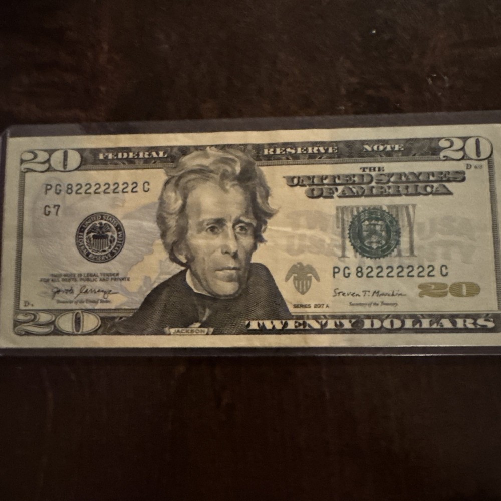 HomeVery Rare Fancy Serial Number $20 Dollar Bill P G82222222C year 2017