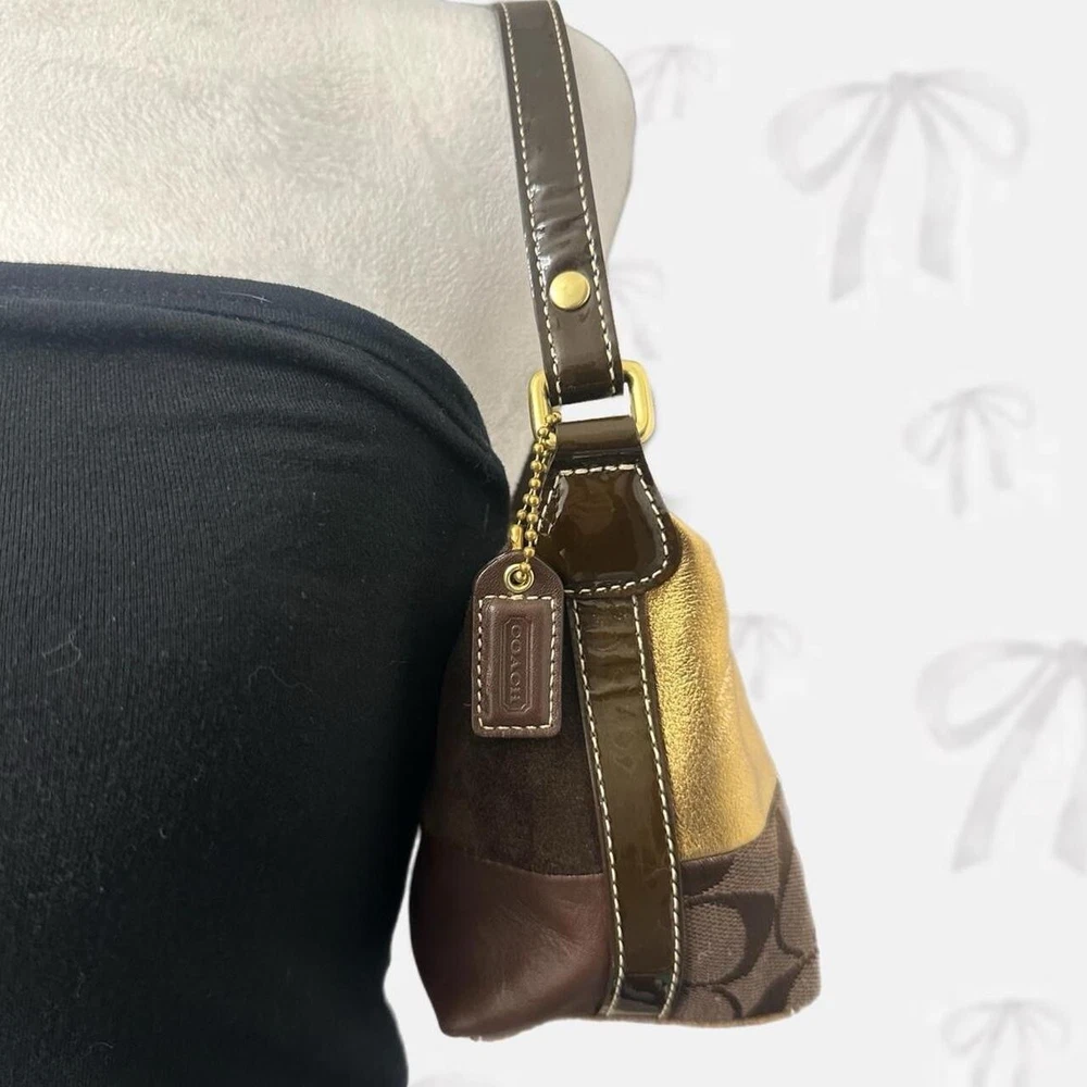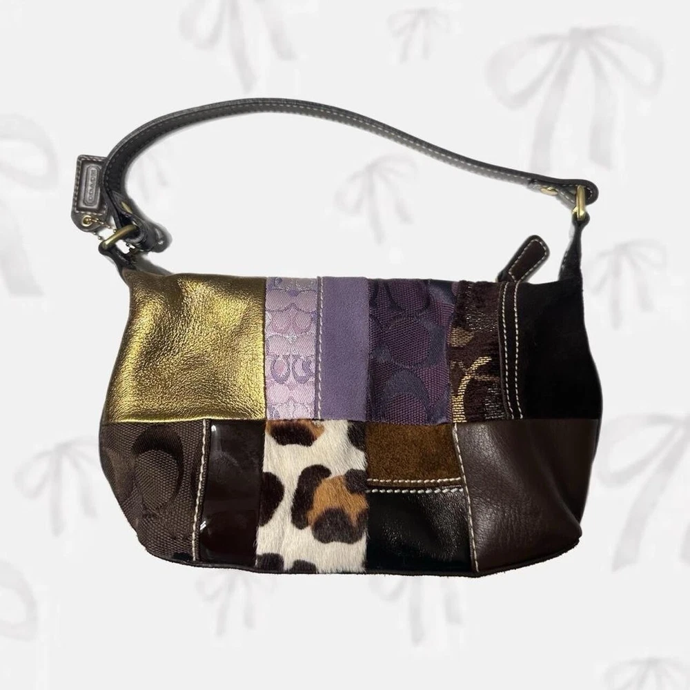Very rare vintage Coach 9x7 Patchwork Shoulder bag β‘βΛ π¦’γ»ββ§ It's in very good condition, only flaw is on the last pic with some minor wear! It does not have an authenticity patch on the inside due to it being old but it does have the symetrical C's on the outside of the bag and it says Coach on the zipper. Send offers!!