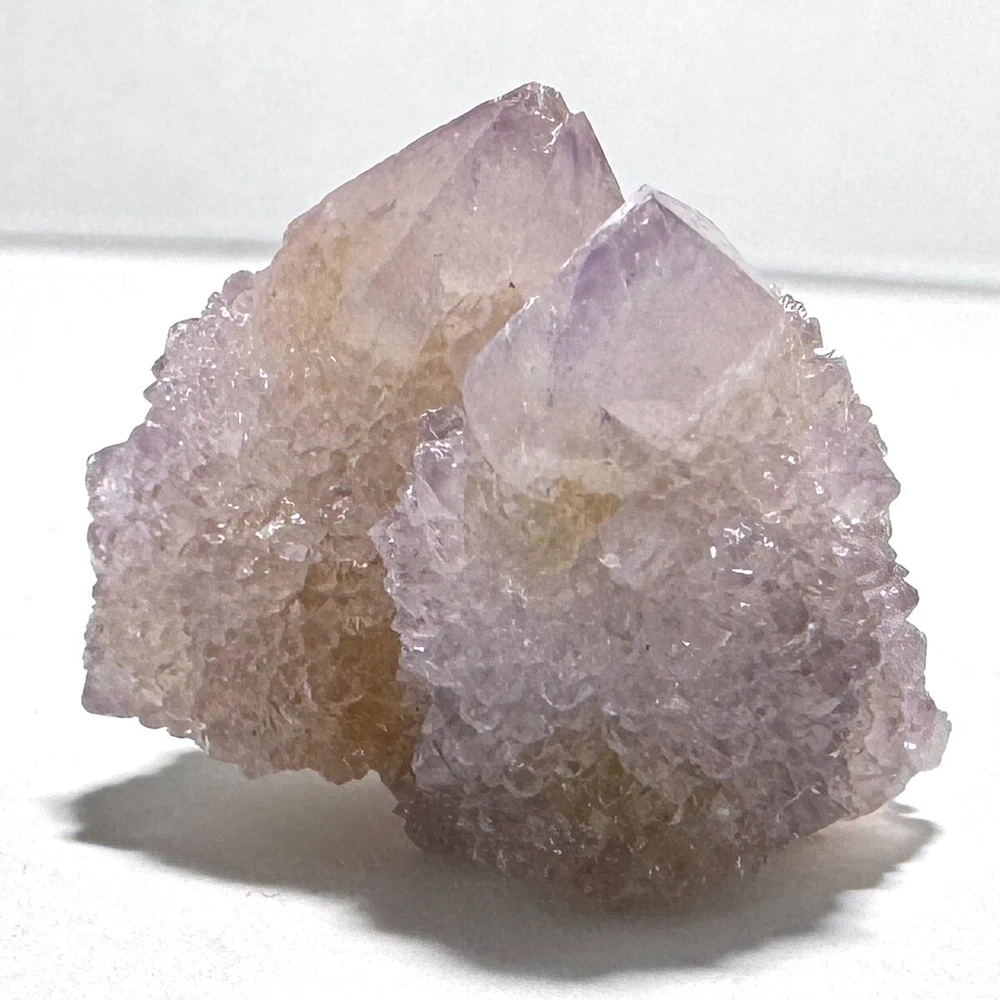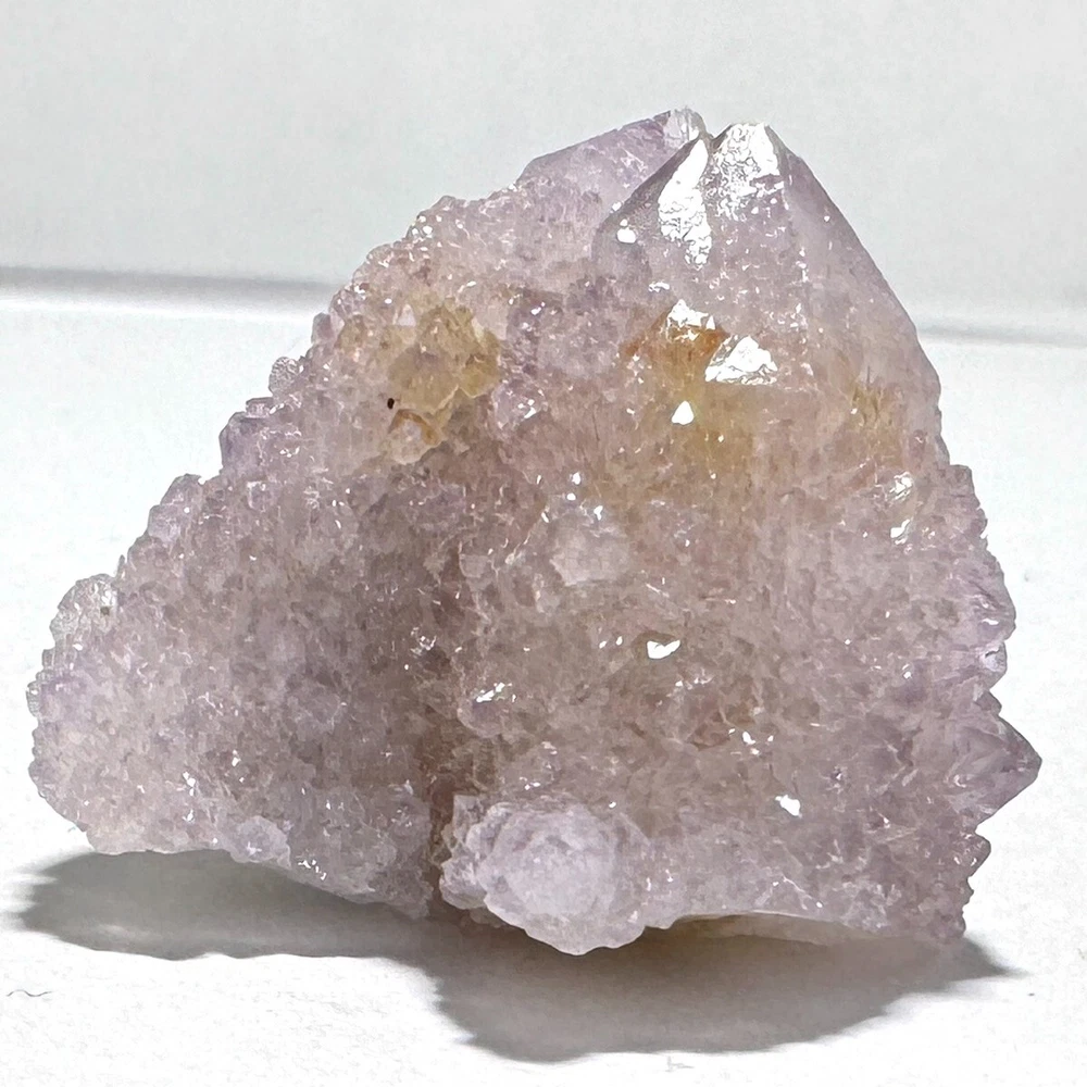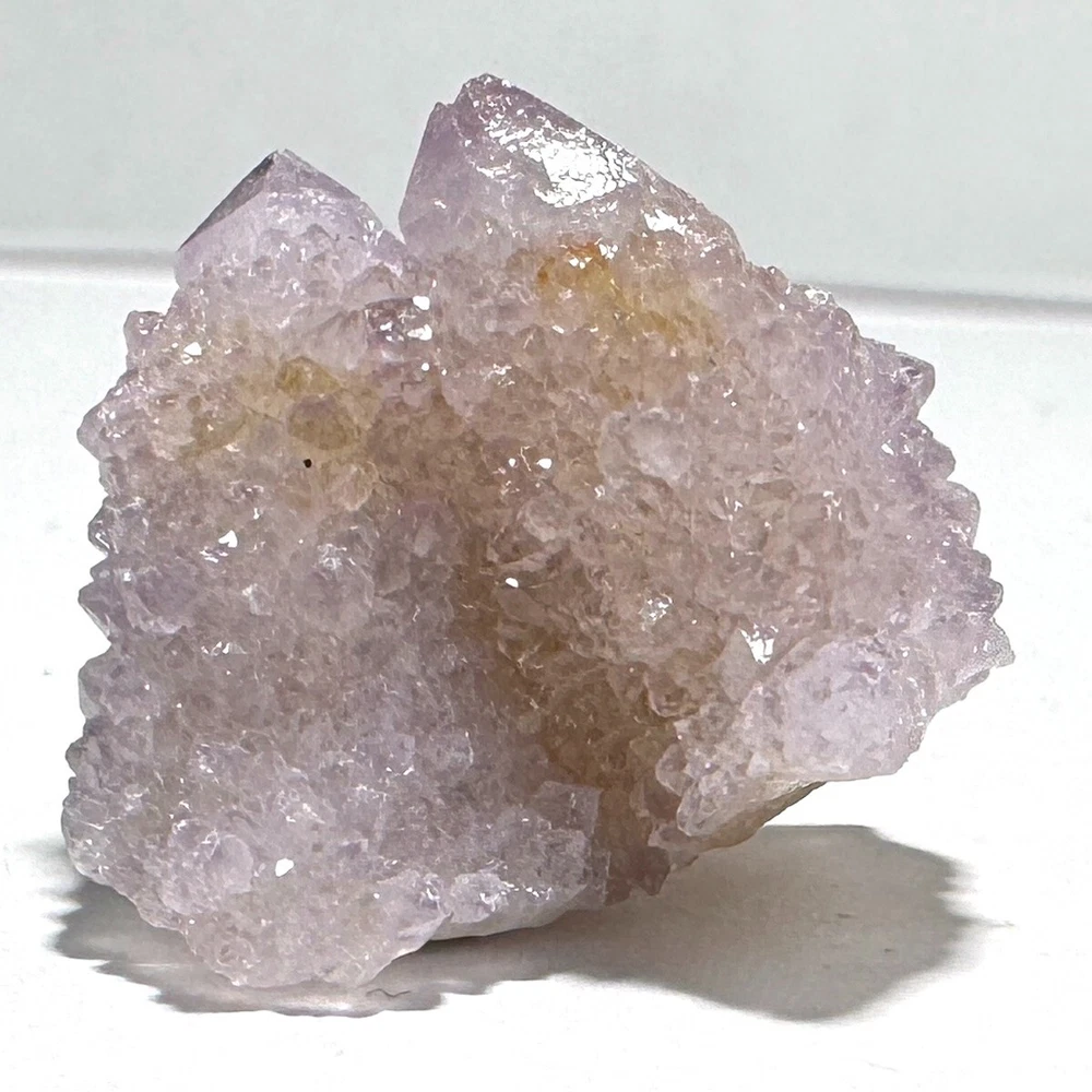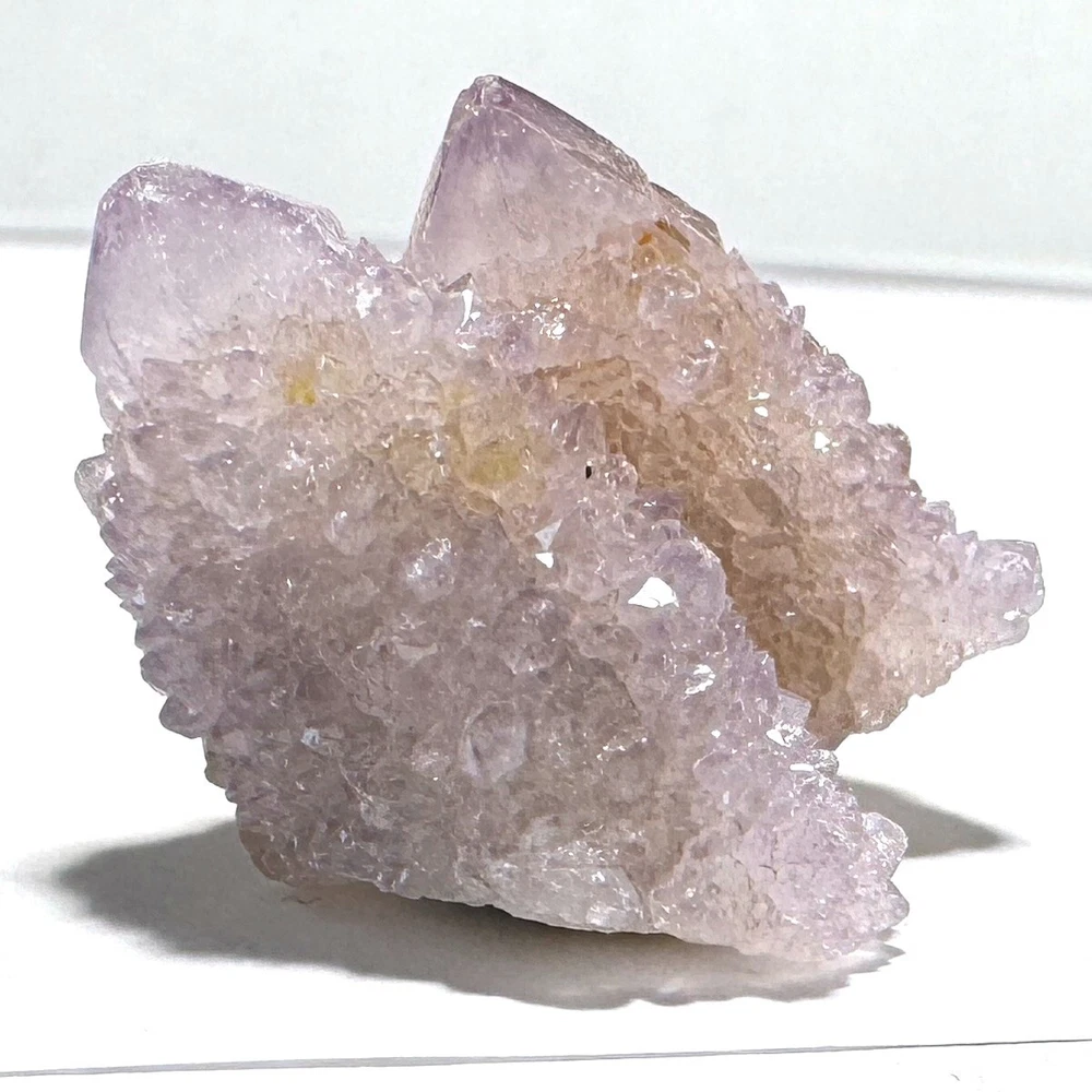 Cactus Quartz or Spirit Quartz Size Approximately 2.5 cm x 2.5 cm x 2.5 cm 12.6 g View My Other Items For Sale Visit My eBay Store Add me to your Favorite Sellers A cactus or spirit quartz is a quartz crystal that is encrusted by a second generation of smaller crystals grown on its prism faces. These crystals were first discovered in 1986 in the Magaliesberg Mountain Range near Pretoria, South Africa. It occurs as quartz, citrine and amethyst, and comes in a wide range of colors, including purple amethyst, violet amethyst, smoky, milky clear and golden citrine. FAQ/Tips Crystals are priced by quality, color and size. Purple amethyst is more highly prized and will cost more for a smaller lesser quality crystal. Lavender is the most common color and where you will find the best quality/value for price Crystals change colors with changes in type angle and intensity of light. Color may also vary between monitors. Pictures were taken in bright natural light. We do our best to give you many views so you can judge the quality of the given crystals. If you have questions please ask before bidding or buying. Many of the crystals have special color properties: Many have phantoms, not just the ones we?ve indicated. Some have ?floating? purple tips. The placement of darker purple against purple or white crystals appears to change as the crystal is turned. Many are a mixture of citrine and amethyst. The ones called ?Golden Healers? or ?Sunshine? have a rainbow effect on crystal faces. We value your feedback please contact us with problems. Items are returnable. Track Page Views With Auctiva's FREE Counter
