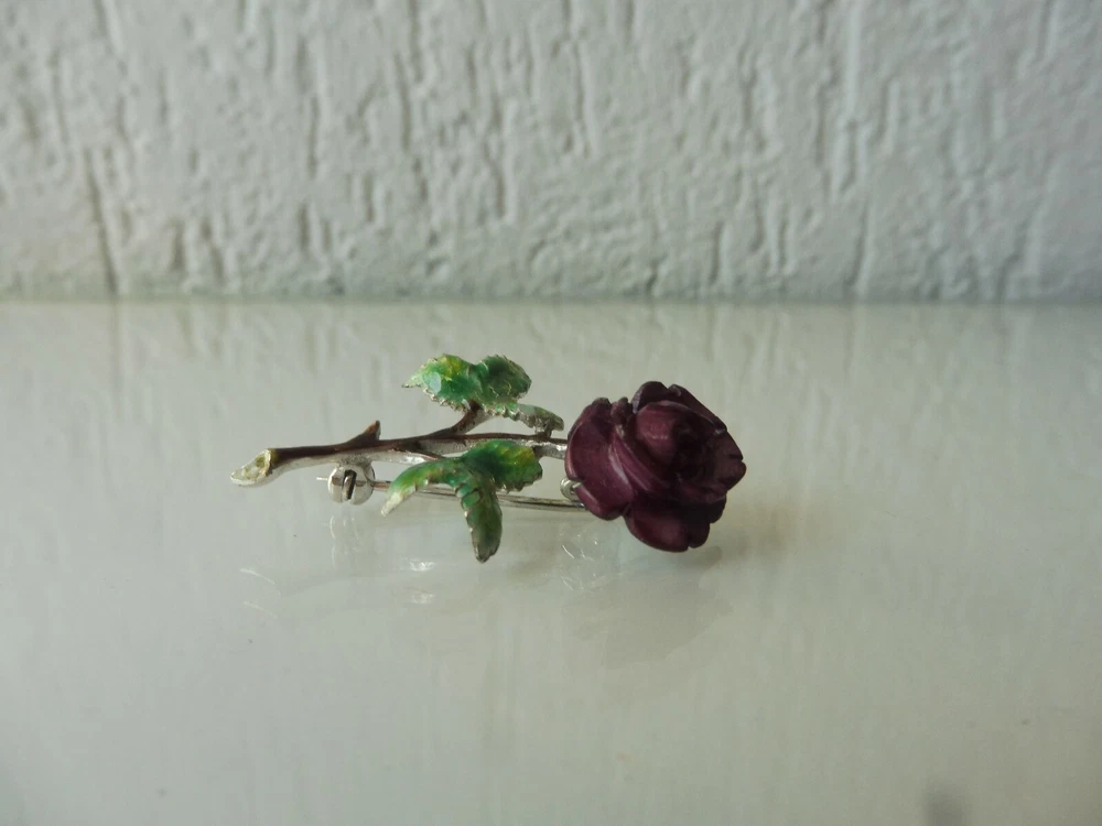 Very beautiful brooch, Rose, 925 silver, enameled, reddish, carved flower The description of this item has been automatically translated. If you have any questions, please feel free to contact us. Very nice brooch. Rose, 925 silver, with reddish (or purple, see photos), carved flower, partly. enameled, beautiful and finely crafted. Good condition (see photos). I don't know the old of the brooch. Dimensions: approx. 4cm long, 2.8cm wide, 1cm thick, weighs 4.1 grams. Very nice brooch! You can find many more beautiful, interesting, old and antique things in my other articles, take a look! Legal provisions Seller's notes This article is excluded from the General Product Safety Regulation 2023/988 (GPSR). Because they are either animal by-products, antiques, collector's items or works of art. Very nice brooch. Rose, 925 silver, with reddish (or purple, see photos), carved flower, partly. enameled, beautiful and finely crafted. Good condition (see photos). I don't know the old of the brooch. Dimensions: approx. 4cm long, 2.8cm wide, 1cm thick, weighs 4.1 grams. Very nice brooch! You can find many more beautiful, interesting, old and antique things in my other articles, take a look! Legal provisions Seller's notes This article is excluded from the General Product Safety Regulation 2023/988 (GPSR). Because they are either animal by-products, antiques, collector's items or works of art. Ausgewählte Suchfilter Brosche Produktart Brosche Metall Silber Marke siehe Beschreibung