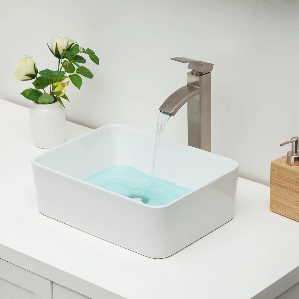 Store New Arrivals Add to Favorite View Feedback Contact Vessel Sink Rectangular - 16"X12" Modern White Bathroom Sink Rectangle above Counter Porcelain Ceramic Vessel Vanity Sink Art Basin Description Base Width 16 Inches Hole Count 1 Color White Product Dimensions 12"D x 16"W x 5"H Material Ceramic Material Type Ceramic Item Weight 21 Pounds Drain Type Pop-Up Shape Rectangular Product Care Instructions Wipe with Damp Cloth Finish Types Polished Installation Method Countertop Item Dimensions D x W x H 12"D x 16"W x 5"H Style Name Modern Size 16"X12" Versatile Vessel Sink: Kichae Beautiful & fancy white vessel sinks are designed and welcomed for any locations, like home bathroom, restaurant, school, indoor or outdoor. Gives an amazing and gorgeous look. Easy to Clean : Interior and exterior smooth, non-porous glaze makes this white bathroom vessel sink more silky and protect the sink surface against stains, making it easy to clean. Constructed with super sturdy and durable with long-lasting & high density ceramic material, our sink can keep new even after many years of using. Easy to install: rectangular above counter bathroom sink, allows you install your bathroom sink on receiving it. Our package has updated foam to well protect the sink from shipping damage. Exterior dimensions: 16"x12"x5", our rectangle white bathroom sink has US standard 1.75”drain opening, please notice that: faucet and sink drains are not included in the package. Well Packed: Each item is wrapped in a specially customized anti-collision foam, to maximize the protection in transporting and avoid potential damage. Our most important goal is to deliver products to you in good condition and satisfy your needs Product Description Kichae 16"x12" Modern Bathroom Vessel Sink Rectangular Versatile Vessel Sink - Kichae Beautiful & fancy white sinks are designed and welcomed for any locations, like home bathroom, restaurant, school, indoor or outdoor. Gives an amazing and gorgeous look. Why Choose Kichae Bathroom Vessel Sink? This modern white bathroom sink offers a sleek and elegant design that will elevate the look of your bathroom. Hand crafted from high-quality porcelain ceramic , it boasts a smooth, non-porous surface that is easy to clean and resistant to stains. The rectangular shape and above-counter design provide a spacious basin for your daily grooming routine. With its fast drainage and easy installation , this vessel sink is a practical choice for any bathroom renovation or new construction project. Kichae Bathroom Sink have many sizes, color and models for you to choose from, as well as above counter, under counter and wall mounted. 24H : Feel free to reach out to us if you have any questions. Discover the perfect blend of style and functionality with the Kichae Vessel Sink Rectangular. Please confirm the size you need Kichae 16" x 12" Bathroom Rectangle Sink Exterior dimensions - 16 "x 12"x 5" Interior dimensions- 15.17" X 11.03" X 4.1" US standard 1 3/4”drain opening. Easy to install Kichae White Vessel Sink Rectangular Features More Detail of This Rectangular Bathroom Vessel Sink: Fast Drainage The bottom of the white bathroom vessel sink slopes towards the center for fast drainage . Rectangle Bathroom Sink Constructed with super sturdy and durable with long-lasting & high density ceramic material, keep new even after many years of using. Deep Vessel Sink Bowl With a depth of 4 1/2 inches , this bathroom sink effectively reduces splashing during hand washing or brushing. Round Corner Bathroom Sink Interior and exterior smooth , non-porous glaze makes this vessel sink more silky and protect the sink surface against stains, making it easy to clean. Discover the perfect blend of style with the Kichae Vessel Sink: Add to Cart Add to Cart Add to Cart Add to Cart Add to Cart Add to Cart Add to Cart Customer Reviews 4.6 out of 5 stars 944 4.6 out of 5 stars 944 4.6 out of 5 stars 944 4.6 out of 5 stars 944 4.6 out of 5 stars 213 4.6 out of 5 stars 944 4.6 out of 5 stars 944 Price $79.00 $ 79 . 00 $82.00 $ 82 . 00 $69.00 $ 69 . 00 $79.00 $ 79 . 00 $79.00 $ 79 . 00 $69.00 $ 69 . 00 $69.00 $ 69 . 00 Size 16 x 12 x 5 inch 16 x 12 x 5 inch 16 x 12 x 5 inch 19 x 15 x 5 inch 16 x 13 x 6 inch 15 x 7 x 3.5 inch 21 x 13 x 6 inch Color White Matte Black White Matte Black White White White Shape Rectangular Rectangular Rectangular Rectangular Oval Rectangular Rectangular Installation Type Above Counter Above Counter Above Counter Above Counter Above Counter Wall mount Wall mount Material Ceramic Ceramic Ceramic Ceramic Ceramic Ceramic Ceramic ABOUT US We offer the best prices around on high quality products. Our E-store includes media such as books, movies, music and games while offering electronics, toys, sporting apparel, clothing, tools, general home, garden items and more. SHIPPING We are always working hard to ensure your package arrives as soon as possible. Please understand that some factors like weather, high postal traffic, and the performance of shipping companies are outside of our control. We offer free shipping to the lower 48 states and ship within 2 business days of payment, usually sooner. We do not accept P.O. Boxes. Please provide a physical address. For shipping outside of the continental USA, we only use eBay's Global Shipping Program.The item is shipped to KY and then sent to the rest of the world. International customers are responsible for all duties and taxes. Continue to check out in order to calculate costs for shipping the item to your country. Messages regarding eBay's Global Shipping Program MUST be directed at eBay EXCLUSIVELY. RETURNS We offer a 30-Day Return Policy on items which you are not completely satisfied with. You have the option for a full-refund or an exchange of the item. No returns are available on items shipped outside of the USA. PAYMENT We accept PayPal. CONTACT US This page content is yet to come Please ad us to your favorite seller and visit again later Thank You CUSTOMER SAT