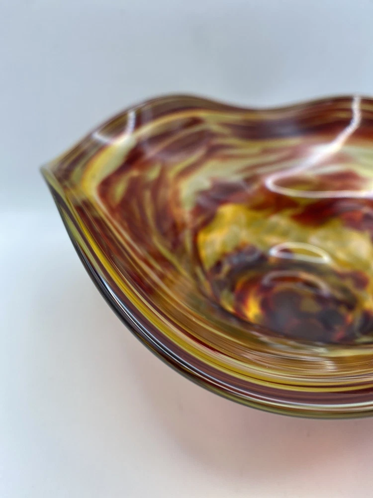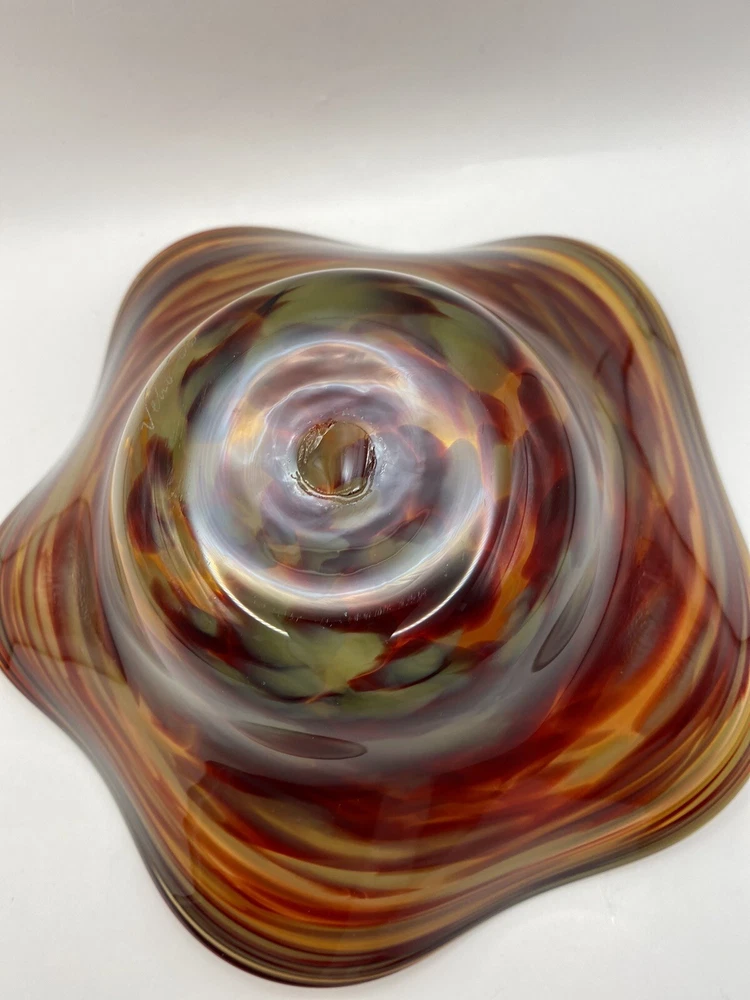 Vetro Murano Handblown Art Glass Flared Bowl~Brown-Copper Swirl~Signed & Dated