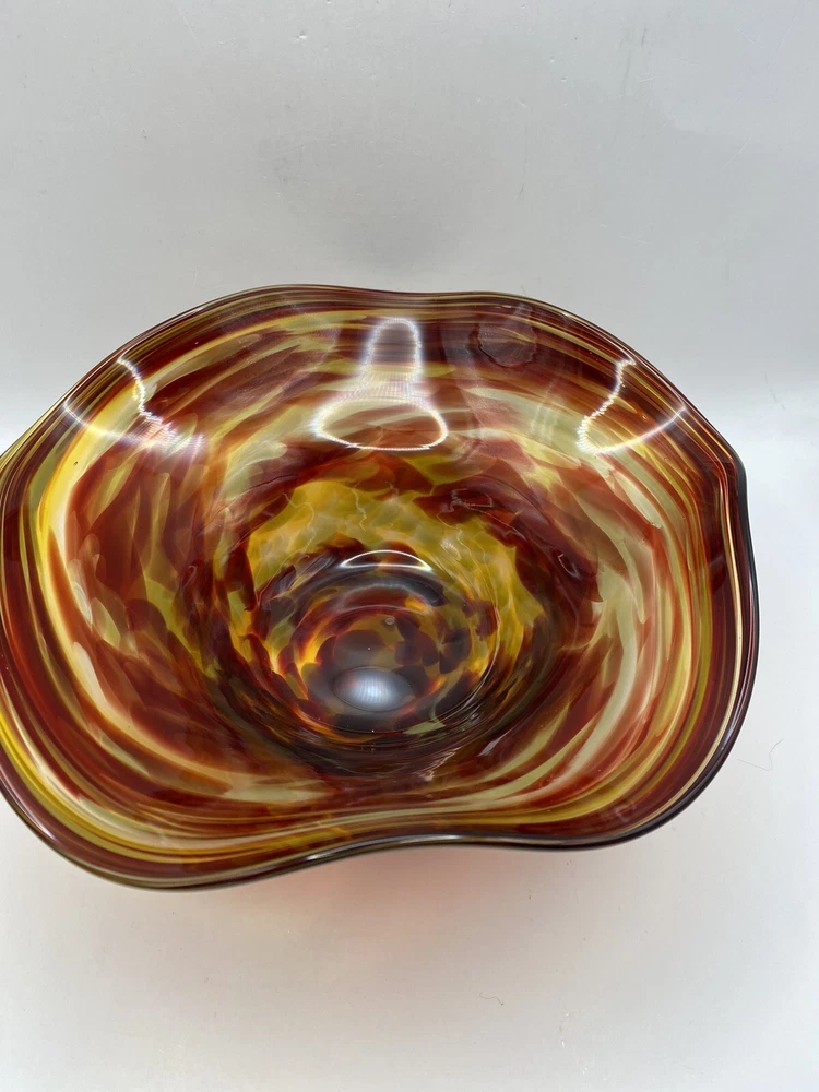 Set Includes: Bowl Handmade: Yes Color: Brown Shape: Abstract Production Technique: Hand Blown Glass Brand: Vetro Murano Type: Decorative Bowl Production Style: Art Glass Pattern: Swirl Country/Region of Manufacture: Italy Material: Glass Vintage: No Origin: Italy