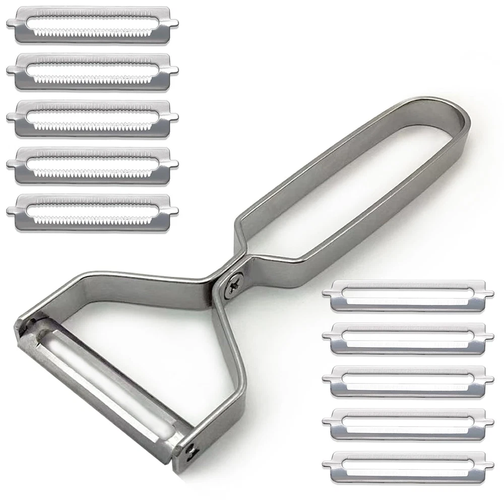 Vfrikor Metal Potato Peeler with 10PCS Replaceable Peeler Blades,Detachable Y S