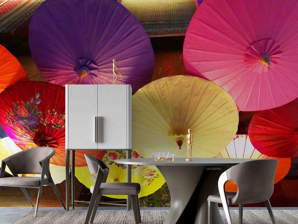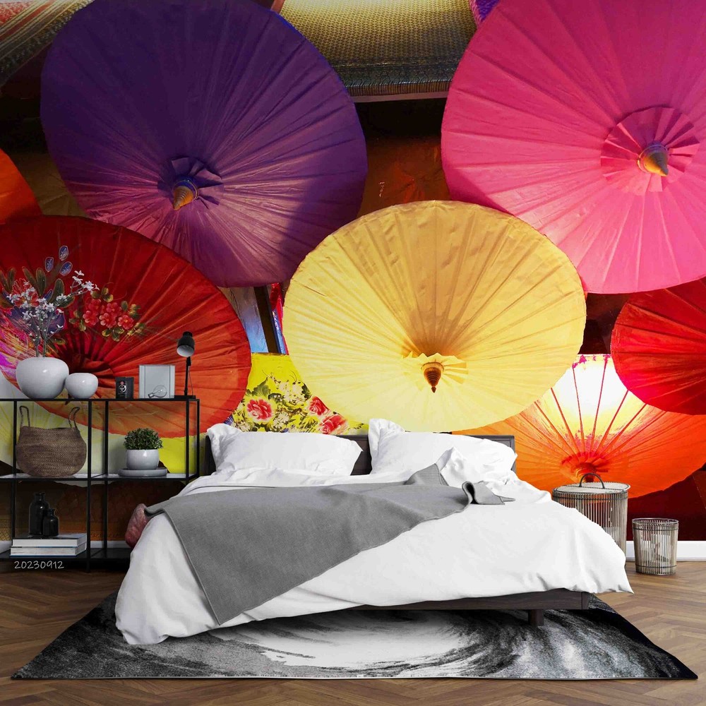 Vibrant 3D Colorful Umbrella Pattern Wallpaper Murals and Stickers