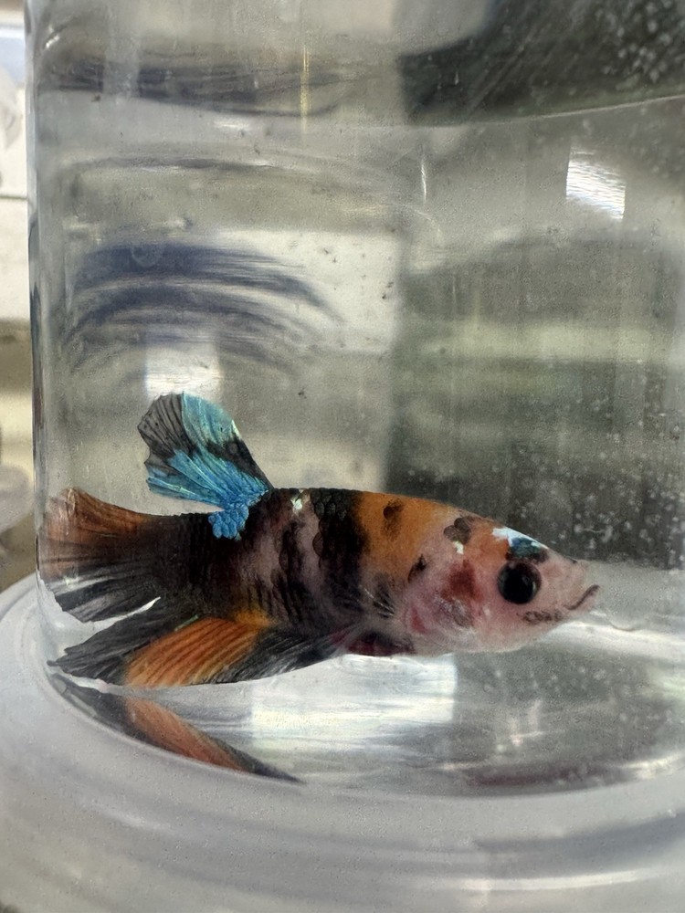The Koi Galaxy Live Male Betta Fish is a tropical freshwater species known for its aggressive temperament. This beginner-level pet fish is a popular choice among aquarium enthusiasts looking for a unique and striking addition to their tank. With its vibrant colors and distinct markings, this Betta fish is sure to make a statement in any freshwater aquarium setting.