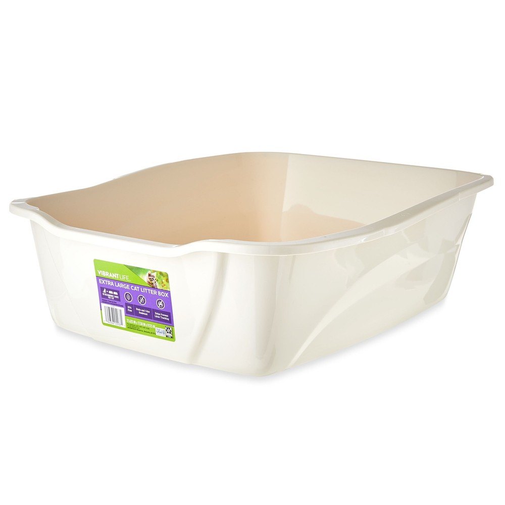 We know that litter control is part of everyday life when you live with a cat, so we've designed our Vibrant Life Extra Large Cat Litter Box to help you keep your cat's litter contained. Our extra-large litter pan is stain resistant, odor resistant and features a non-stick, easy-to-clean surface that makes caring for your beloved furry friend easier than ever before. Additionally, the pan's six-inch-deep by 16-inch-wide size is large enough to accommodate most cat breeds while being compact enough to house in a bathroom or laundry room. Minimize messy litter with our Vibrant Life Extra Large Cat Litter Box. Vibrant Life Extra Large Cat Litter Box BPA Free Stain and odor resistant Non-Stick easy-to-clean surface Vet recommends 2 pans per 1 cat 6.0" depth; 21.5" long x 16" wide Disclaimer: Please use litter manufacturer recommended fill levels