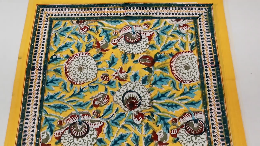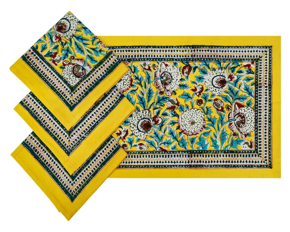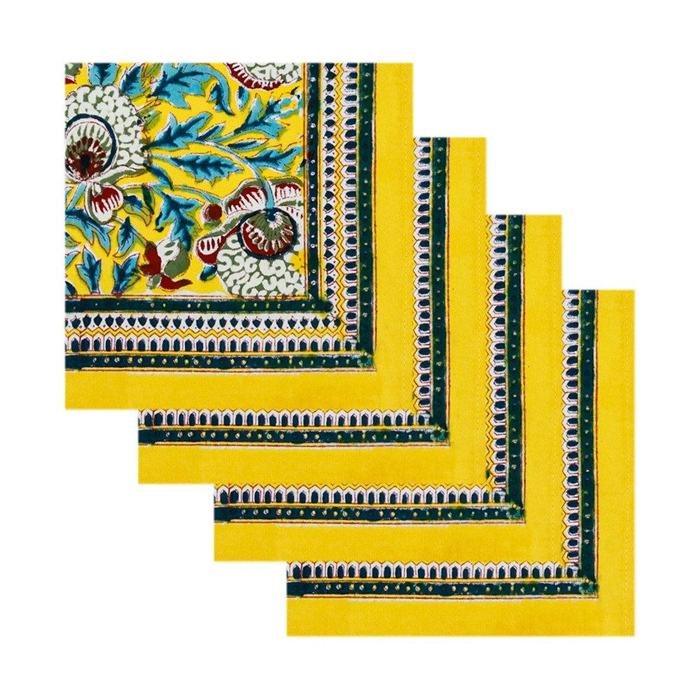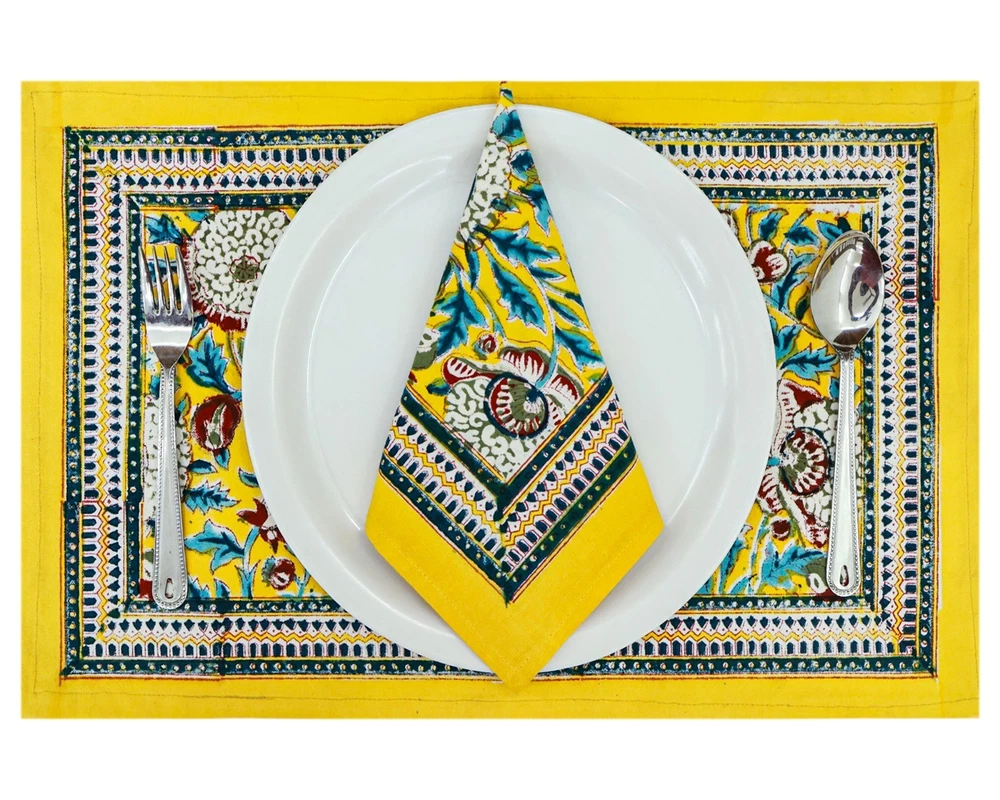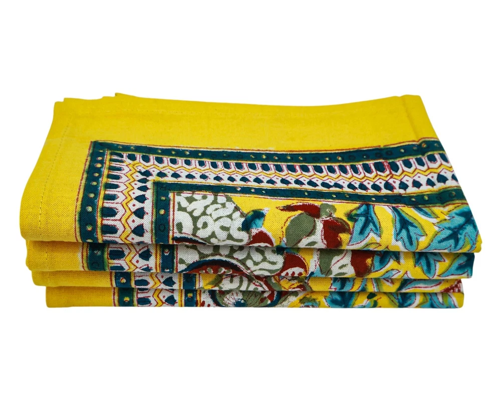 Yellow Black Indian Hand Block Printed Cotton Napkins