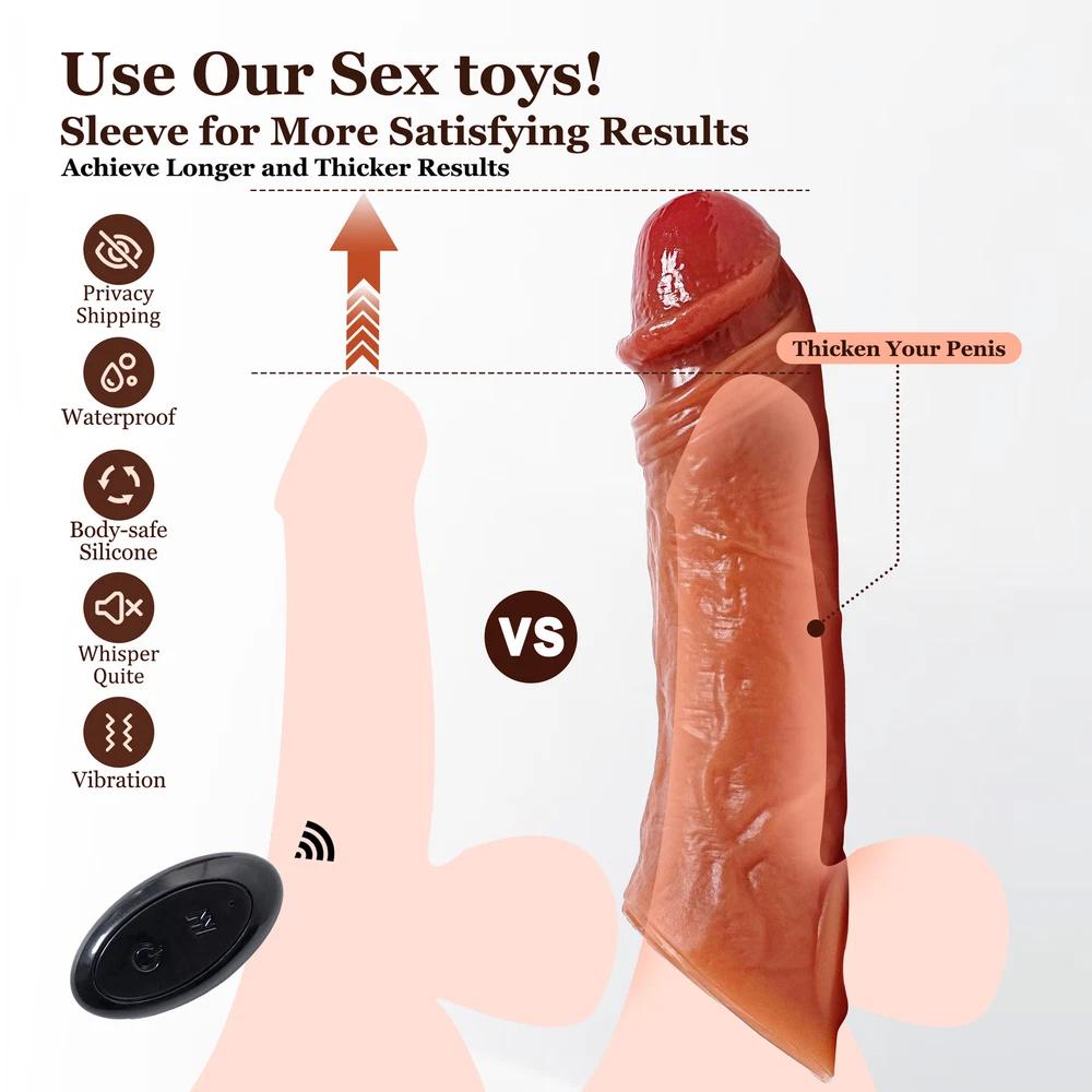 D iscreet Package 1 00% Bra nd New Feature: Material: Silico ne T otal length: 20cm Outer dia: 6.5cm Inner dia: 4cm Weight: 175g Function: Vibration/wireless remote control About the item +++Super Realistic penis sleeve made of ultra safe and soft liquid silicone, with amazing touching and texture, easy to wear, clean, comfortablle to use, make the penis and sleeve unite as one. +++Wear it to increase the length by 2.4in and thicken by 0.31in, fits all size of penis. +++Built-in vibrator with 10 vibration modes, your partner can have the remote on hand. USB charging. Waterproof, durable material, reusable. (Vibrator no need to disassemble). Notes: Please feel free to contact us if you have any questions. If you contact us out of office hours, we will get back to you the next business day. Thank you for your understanding.