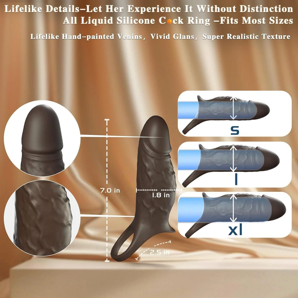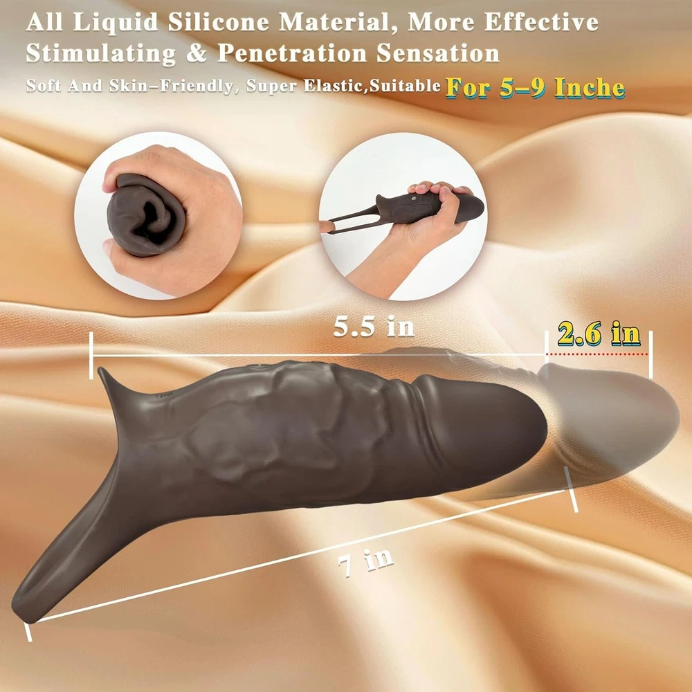 Vibrating Penis Extender Sleeve Cock Ring Vibrator Extension Men Couple Sex Toys <> <> <> Features(About the item): ❤【360° All-around Penis Sleeve】-Your partner will enjoy deeper penetration with the 2″ extension at the tip, while the ultra-lifelike shaft makes you 33% thicker. Along with vibration stimulation, it can offer a fuller feeling & an exceptional climax. ❤【All Liquid Silicone Fits All Penis Sizes】-This sex toy for men has a soft and form-fitting penis ring at the end that stably locks the ball in place for enhanced pleasure. Its stretchable material allows it to fit all shafts without tightness or tension. ❤【Real Vein Texture & Protruding Design for Precise Stimulation】- Authentic vein texture on the shaft surface enhances realism. The curved shaft is designed to precisely target the G-spot or P-spot to maximize the pleasure at women's climactic points. ❤【Built-in Intense Motor with 10 Vibrations】-This vibrating cock ring features 10 vibrations for intense G-spot and vaginal stimulation,teasing and arousing your penis. Both partners will enjoy the powerful vibrations,leading to more intense climaxes! ❤【Ultra-quiet & Long Working Life】- We upgraded the noise reduction technology of this pocket pussuy for men , this sex accessories for adults couples is made of high-quality sound-proof material, which greatly improves the noise problem. Noise less than 65 db allows you enjoy your sex life anytime. This sex game uses brushless motor which has stronger power and longer life. No worry the problem that the sex machine does not work after a few times of use due to the short life of the motor ❤【Address Erectile Dysfunction (ED)】-Designed to effectively offer extra support and functionality, it continuously and repeatedly trains the penis, aiming to extend ejaculation time. This provides comprehensive training for erection and endurance. ❤【Options for Your Sexual Play】- Whether it's used for intense P-spot stimulation during doggy style, added thrill in blowjob sessions, or G-spot targeting in missionary, this versatile male sex toy adapts to enhance every sexual experience. Sex Toys for Men. Cock Sleeve. ❤【100% Waterproof & Upgraded Magnetic Charging】- The male vibrator is fully waterproof and easy to clean. Its upgraded single magnetic charging port offers faster charging speed and stability, ensuring worry-free play. ❤【Medical-Grade Materials & Quiet Operation with Discreet Packaging】- Crafted from the finest medical-grade silicone, it offers a whisper-quiet experience for your intimate moments. This sex toy comes with a discreet box. Package Included: 1 x Vibrating Penis Extender Sleeve Cock Ring G-Spot Vibrator Dildo Sex Toys for Men Women Couples 1 x USB Charging Cable 1 x Instruction User Munual