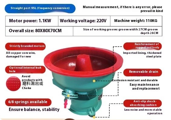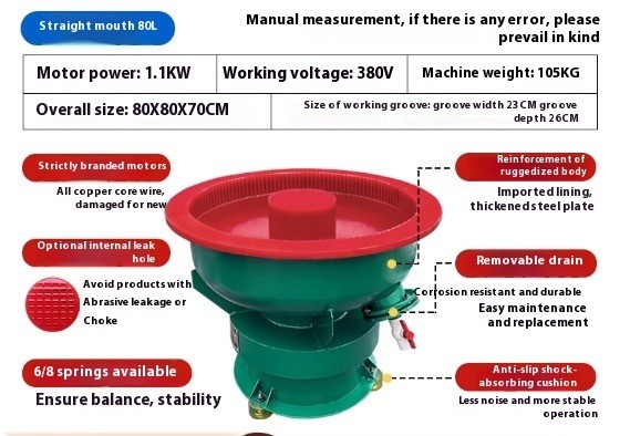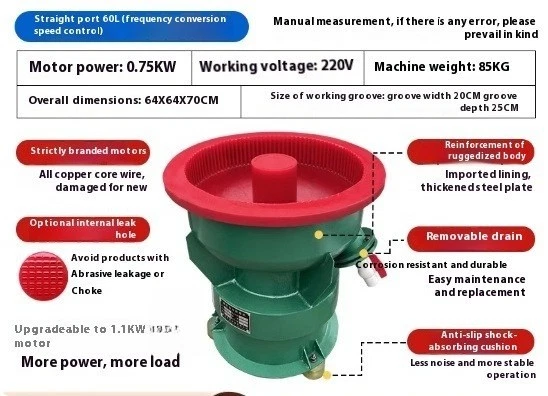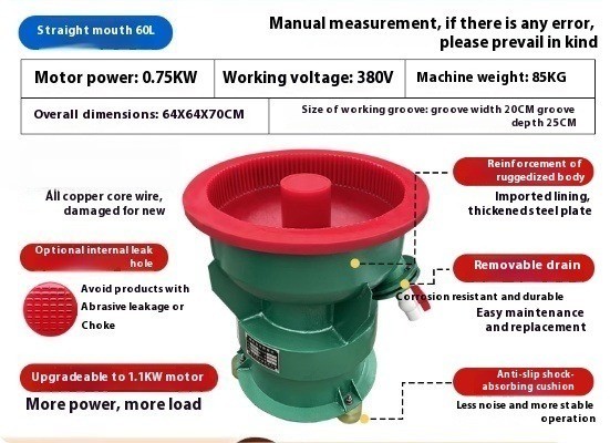 Vibration Polishing Machine Grinder Spiral Finishing Machine Vibrating 220V Utilizing advanced spiral three-dimensional vibration technology, the vibratory finishing machine is suitable for surface polishing, chamfering, deburring, grinding, and brightening of workpieces of various sizes. The process preserves the original dimensional accuracy of the product while eliminating internal stresses, enhancing surface finish and precision. This provides an excellent foundation for subsequent surface treatments such as electroplating, spraying, and blackening.