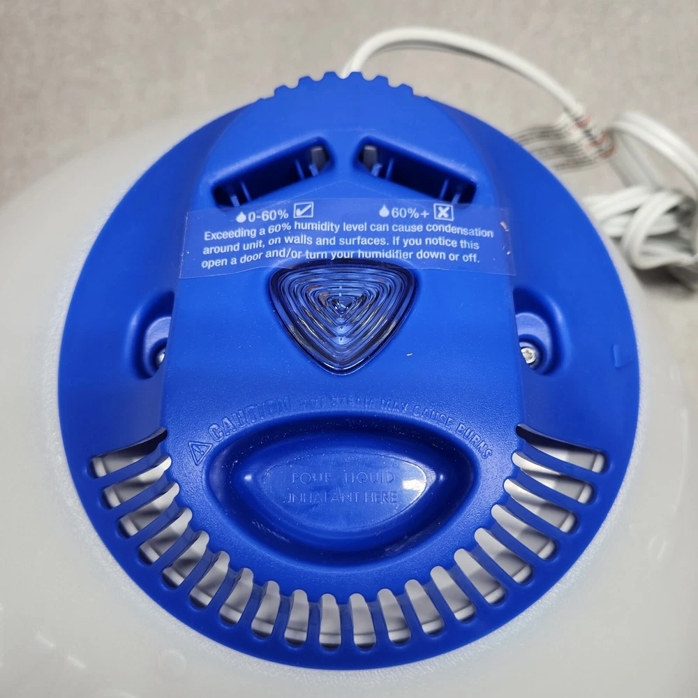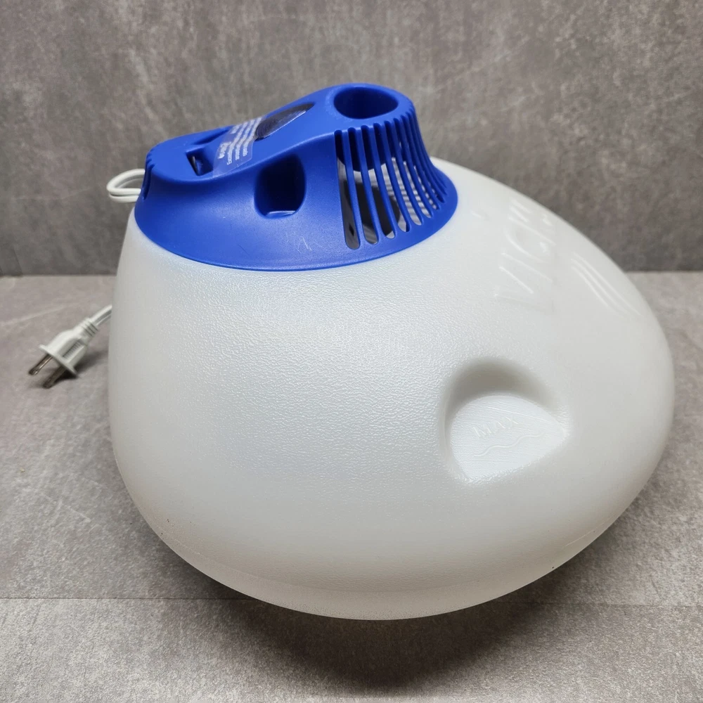 Recommended Room Size: Small, Small/Medium Item Weight: 2 lb Material: Plastic Tank Capacity: 1.5 gal Number of Speeds: 1 Type: Tabletop Humidification Method: Vaporizer Item Height: 10 in Power Source: Electrical Year Manufactured: 2016 Color: White, Blue Room: Any Room, Bathroom, Closet, Bedroom gtin13: 328785101539 Model: V150 Brand: Vicks Timer Control: 24 hrs UPC: 328785101539 Seller Notes: “Excellent working condition. See photos for details.” Voltage: 120 V Features: Automatic Shut Off Power: 1000 W