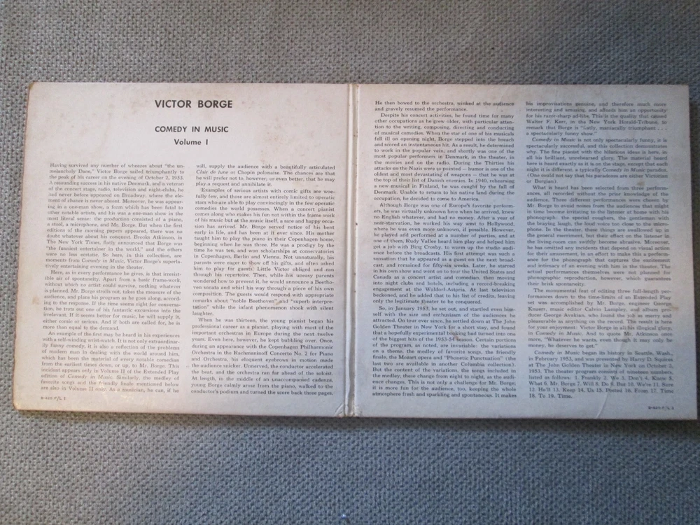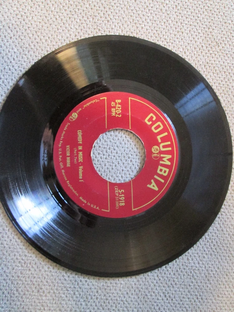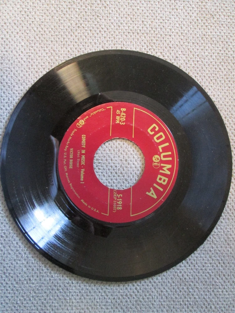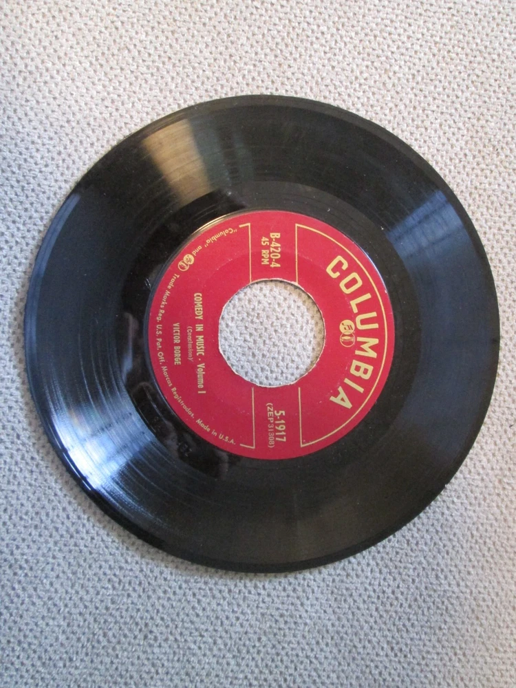 Victor Borge Comedy In Music Vol. 1 45 RPM Box Set Columbia Note: PLEASE NOTE THE FOLLOWING: Condition: all records that I have listed will be from local estates and are used. They are not in mint condition. I have not played or tested any records unless stated above. I have not cleaned any of them. Each may have scuffing, scratches , dust, fingerprints, wear, fading, tears, writing on label and/or sleeve and other issues . May not have an inner sleeve. Covers may have scuffing, fading, tears, stains and other issues. Any major flaws will be noted above. Please note that I am not a professional grader. I can only provide information about the items' conditions and not about a certain level of grading. .