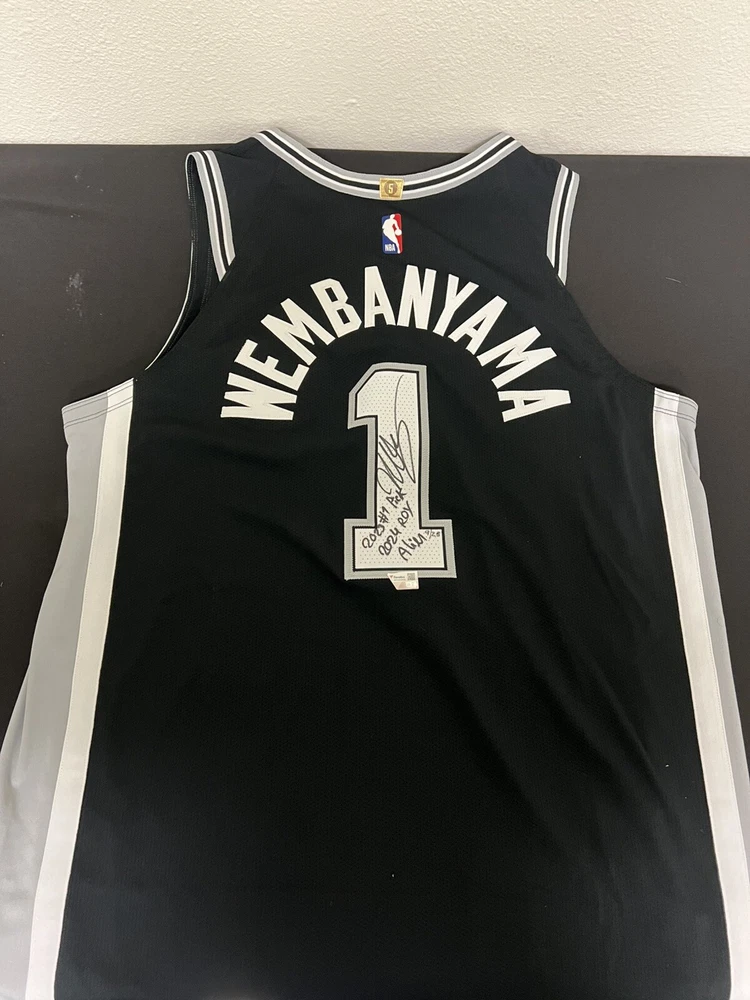 Original/Reprint:OriginalIs Autographed:YIs Inscribed:YesProduct Type:Autographed NBA JerseysProduct:JerseyPlayer:Victor WembanyamaAutograph Authentication:Fanatics AuthenticIs Game Used:NLeague:NBAFramed:NoCategories:Autographed NBA JerseysSport:BasketballSigned:YesTeam:San Antonio Spurs
