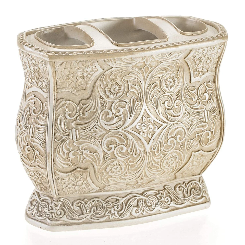 Textured Finishing; The Victoria Bathroom Sets Scroll Pattern And Swirling Floral Motifs Provides A Finish With A Textured Feel That Not Only Looks Classy; But Also Makes For Non-slip Grip. Handling Your Bathroom Decor Sets Accessories Is Much More Comfortable Even With Slippery Or Wet Hands. Durable: All Pieces Of This Bathroom Soap Dispenser Set Are Made Using High-quality Heavy Resin Material Which Never Rusts For Enhanced Durability & Functionally. Dual Purpose; While The Bathroom Sets Accessories Brings Functional Convenience To Your Bathroom, It Is Also A Great Addition To Its Interior Décor; Easily Turn The Tumbler Into A Holder Of Lovely Seasonal Flowers. Bathroom Accessories Sets Complete: Includes Everything You Need For Personal Grooming In The Bathroom. Includes 7.75” X 4.25”x 4.25” Lotion/soap Dispenser Fitted With A High Quality Pump, A 4.25” X 4” X 2.25” Toothbrush Holder That Can Also Hold Toothpaste, 4.5” X 3” X 3” Tumbler And A 1” X 5.75” X 3.75” Soap Dish. Amazing Gift Idea: Bundle This 4 Piece Bathroom Decor Set With Other Items Of The Victoria Bathroom Accessories Collection To Create A Unique Housewarming Or Hostess Gift That Leaves A Lasting Impression. Click 'add To Cart’ Now!