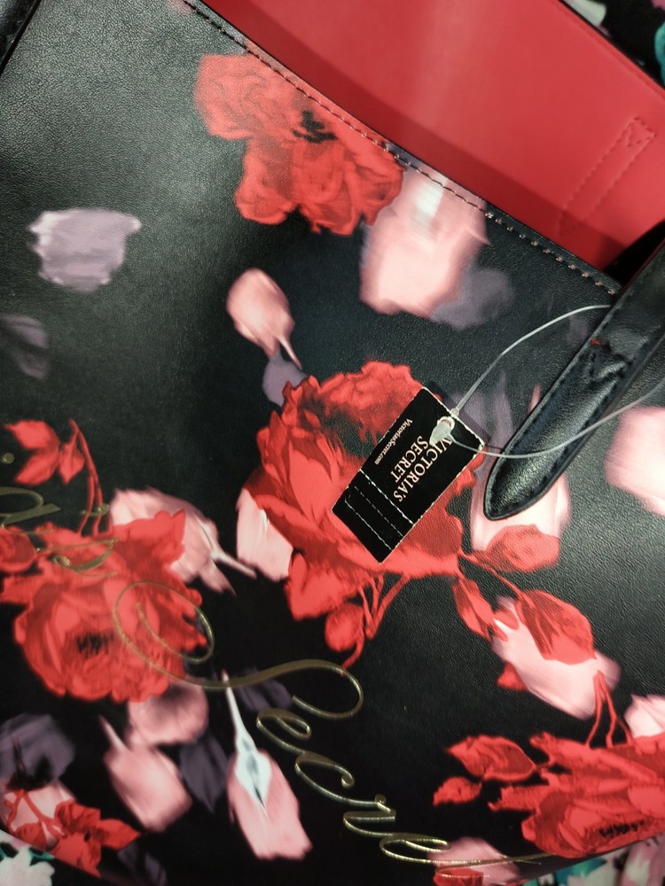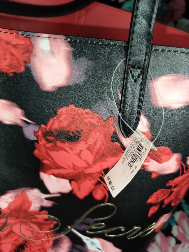 Victoria Secret Black Red Rose Floral Tote Bag Limited Edition 2019