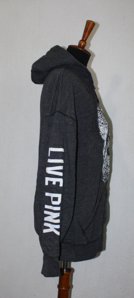 Welcome to Pim's clothing sales Very good condition medium weight hoodie. Soft cotton blend. Dark gray with studded white skull print. Long sleeve. Pouch pockets at bottom. Brand: Victoria's Secret Material: 60% Cotton 40% Polyester Size : XS tagged Bust: 21 armpit to armpit Shoulders: 23 Length: 25 back of collar to hem (Ask if you need more measurements) Please Remember all Clothing Items may fit differently depending on Brand, Fit, Use or Prior customization. We strongly urge our customers to check measurements first to guarantee proper fitting. Please be sure to check out our listings frequently for more high quality Designer Brand clothing items at a fraction of the price. We are getting new inventory all the time! You never know what amazing deals you may find :) Shipping discounts will be provided for multiple purchases - Please contact us after multiple purchases for an updated invoice.