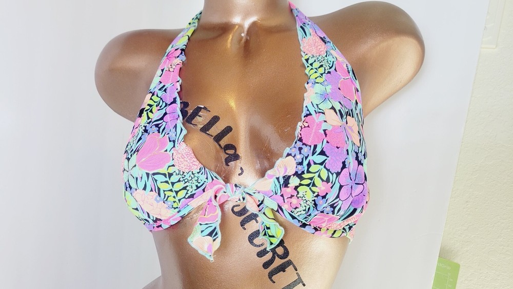 Make a splash with this stunning Victorias Secret halter bikini top. Designed in a medium size, this pushup piece boasts an underwired fit that enhances your curves, while the multicolor design, featuring a bold animal print, flower, and solid patterns, makes a bold fashion statement. Crafted from luxurious satin material, this bikini top is both comfortable and stylish, perfect for a day at the beach or pool. With a vintage touch and a sexy plunge neckline, this bikini top from the Victorias Secret Bombshell/Plunge product line is sure to turn heads. The size type is regular, and it is perfect for women who want to make a fashion statement with their swimwear. Don't miss out on the chance to add this stylish and comfortable bikini top to your swimwear collection. * PLEASE VIEW ALL PICTURES AS THEY ARE PART OF THE DISCRIPTION AND PLEASE READ ITEM DETAILS AS THEY ARE PART OF THE DISCRIPTION * PLEASE CONTACT ME WITH ANY QUESTIONS OR CONCERNS * PAYMENT IS DUE AT TIME Of PURCHASE *If there are any problems with the items please notify me right away so we can resolve the issue. Any questions please feel free to ask, I will respond to all questions within 24-48 hours (usually less but allow 48 hrs please) Payment PayPal, please keep in mind when paying with e-check through PayPal it takes an additional 5-7 days for check to clear. International Buyers – Please Note: Import duties, taxes, and charges are not included in the item price or shipping cost. These charges are the buyer's responsibility. Please check with your country's customs office to determine what these additional costs will be prior to bidding or buying. Customer Service I am an honest seller and aim to provide the best service I possibly can offer. I want you to be 100% Happy with your purchase and my service! 5 STAR Feedback is important to me. If you have any questions at all with your purchase, please contact me. I am quick to respond to any question or comment. I am human and do occasionally make mistakes but it’s nothing that can’t be fixed CHECK MY OTHER LISTINGS