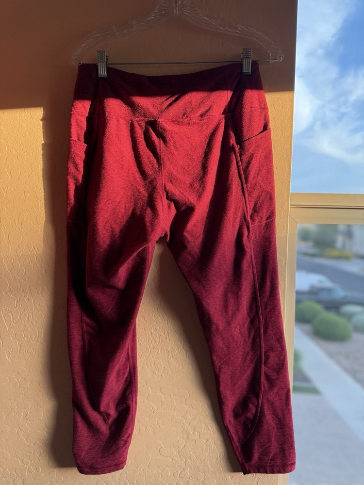 Move with confidence in these Victoria’s Secret On Point Flow leggings. Designed for both active days and cozy lounging, these leggings feature a soft, brushed texture that feels like a dream against your skin. • Deep burgundy hue for a bold, flattering look • High-rise waistband for smooth support • Handy side pockets • Size large | 87% polyester, 13% elastane • Gently worn, in excellent condition Perfect for yoga, errands, or just chilling in style.