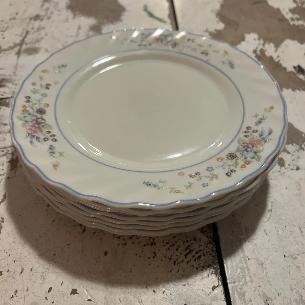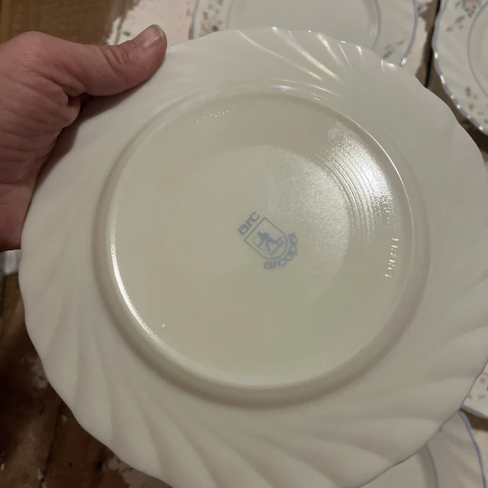 This beautiful chop plate set of 8 from Arcopal features a stunning Victoria pattern with a colorful floral design and a blue trim. The plate measures 7.5 inches in diameter and has a swirl edge for added texture. Made from high-quality ceramic, this salad plate is perfect for any occasion and will make a great addition to your collection. Use it for special dinners or as a decorative piece in your home.