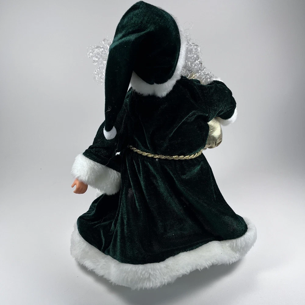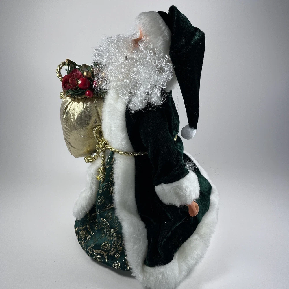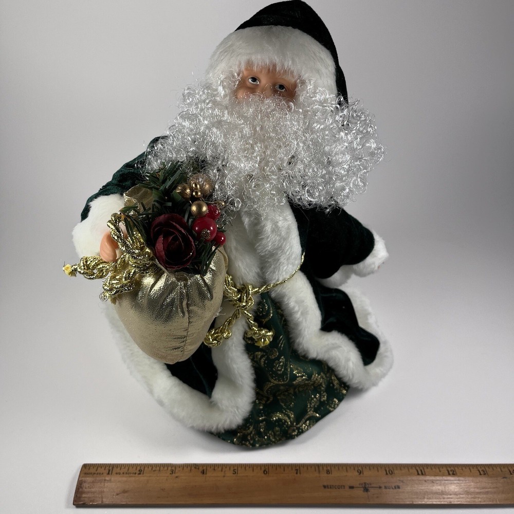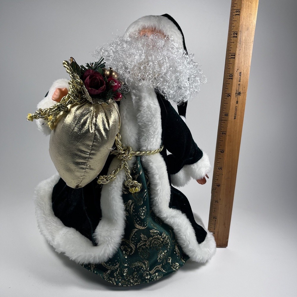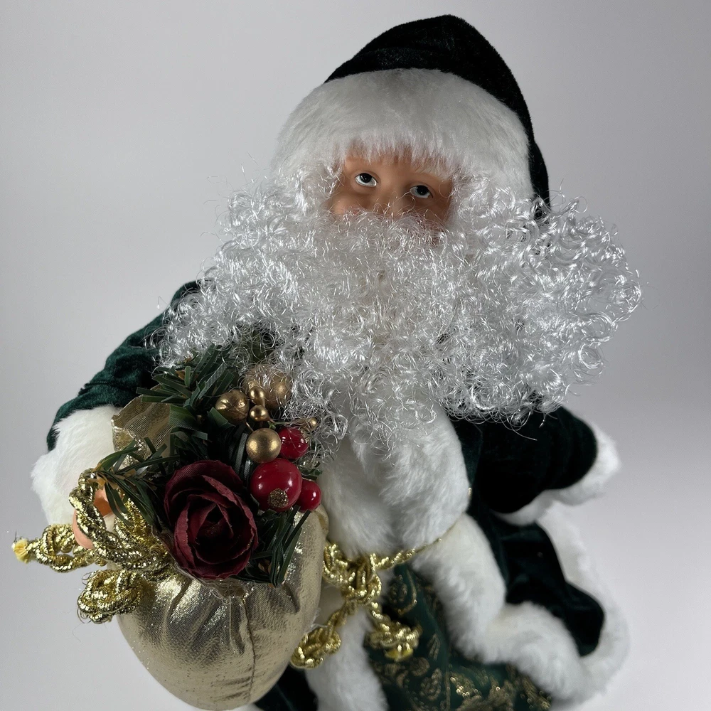 Add a touch of Victorian elegance to your Christmas décor with this beautiful green velvet Santa tree topper or shelf by Giftco. Crafted with care, this 13 inch high and 9 inch wide piece is perfect for adding to your holiday collection. The deep green color and luxurious velvet material make it a standout piece, while its charming Santa design adds a touch of whimsy to your space. Ideal for those who love traditional Christmas decorations, this item is sure to become a treasured piece in your collection.