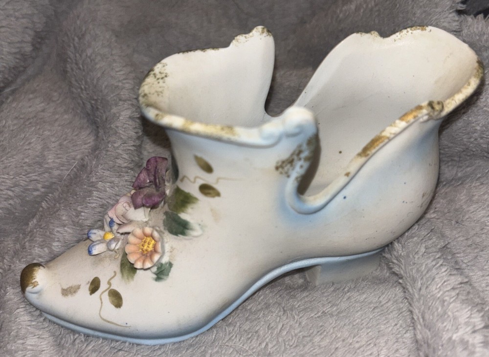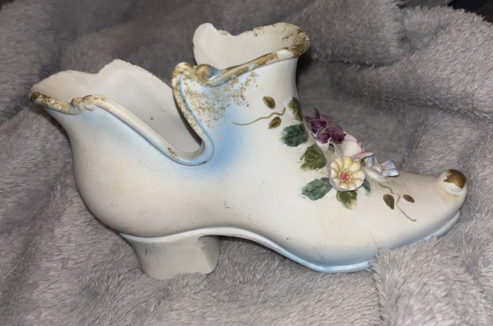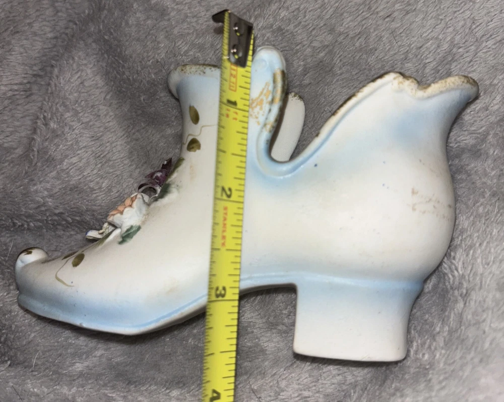 Add a touch of vintage charm to any space with this beautiful white porcelain Victorian shoe figurine. Adorned with delicate applied flowers and a classic multicolor design, this figurine is perfect for all occasions and will complement any room decor. The shoe's intricate pattern and style make it a great addition to any collection or as a standalone statement piece. Ideal for lovers of classic beauty, this painted finish shoe figurine is sure to impress.
