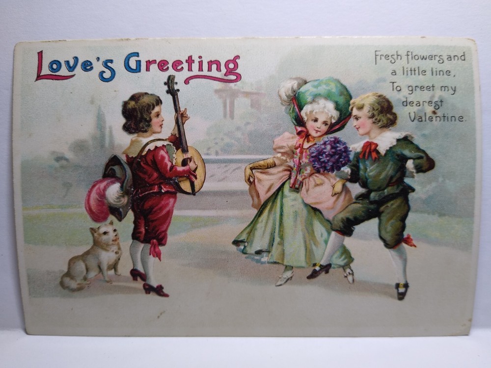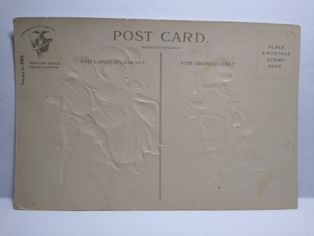 Series 1834. Non posted. Antique original vintage embossed post card. Has light marks, corner dings, and age wear. Stock #val81. Additional postcards are in our store. All post cards are old originals and may or may not have writing on back. Bundle and save by using cart and making single payment.