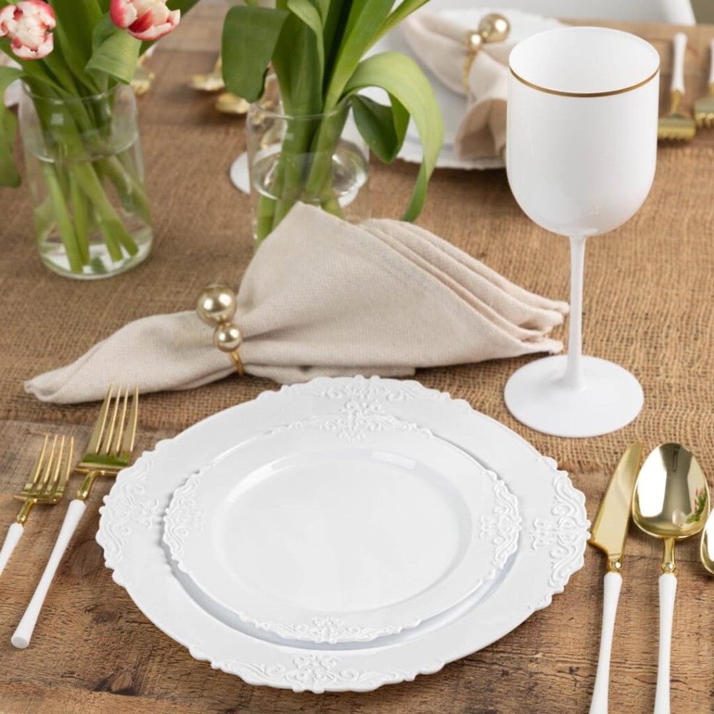 These elegant Victorian-style plates instantly elevate any gathering with their beautiful embossed details. The sturdy plastic holds up well while looking surprisingly upscale—perfect for weddings, tea parties, or holiday dinners. I love having both sizes for versatile serving, and the 32-count pack means no last-minute runs for extra plates. Cleanup is a breeze, yet guests always comment on how fancy they look!