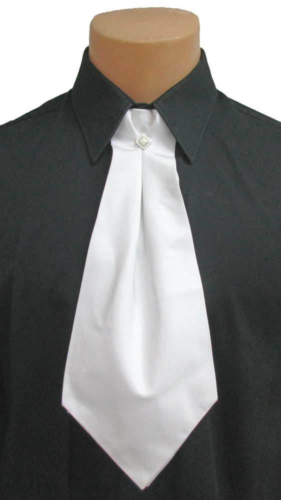 VERY HAPPY with the Tuxedo Rental Stoe white polyester Victorian Era inspired, adjustable neck sizes, cravat tie with diamond shape tie pin, FAST shipping, A+++++++++++++++++++++++++++++++++++++++++++