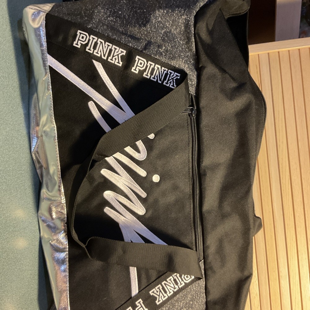 This Victoria’s Secret large duffle travel bag is perfect for women who love to travel in style. The bag is embroidered with a pink logo and has a shoulder strap for easy carrying. It is made of polyester and canvas materials and has a rectangular shape with a zip closure. The bag is lightweight, packable, and stain-resistant, making it a great choice for travel. It has a Victoria character and a plastic hardware material. The bag is also adjustable with limited edition features. It is suitable for any occasion, especially travel.