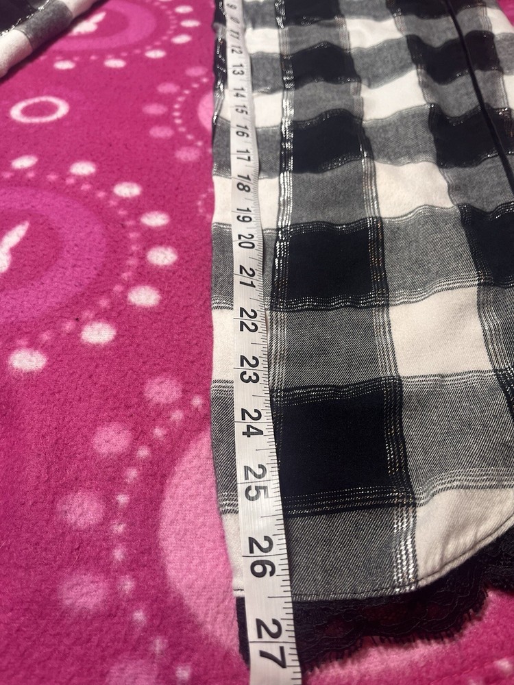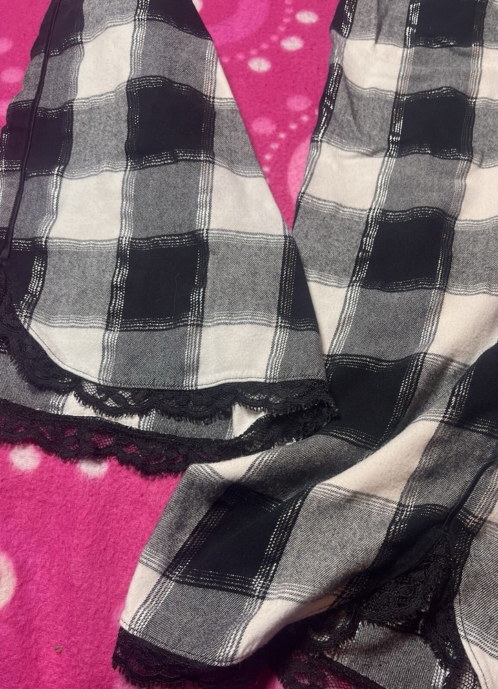 Victoria’s Secret black & white checkered shimmer pajama pants with lace trim bottoms. Size xs, shown on xs. Measurements in photos. Good preowned condition