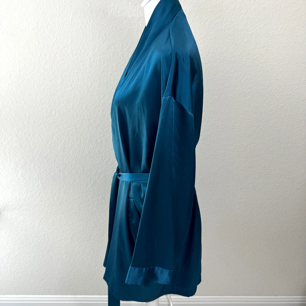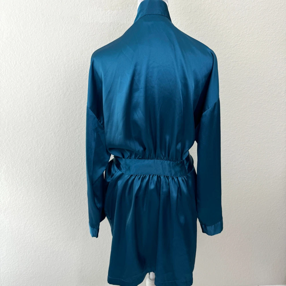 Victoria's Secret Knee Length Robe One Size Satin Intimates Blue Teal